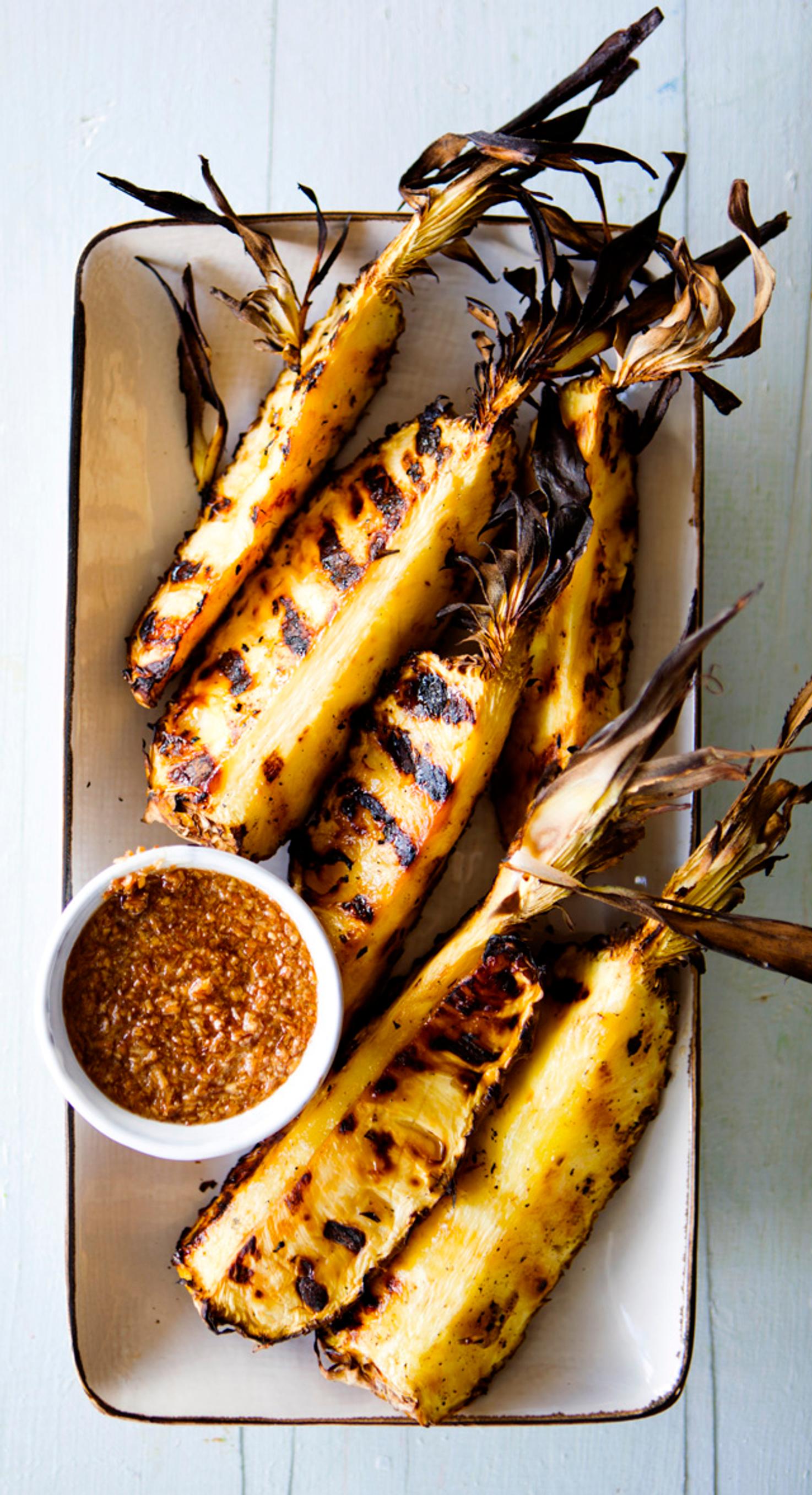 Grillattu ananas on paras päätös grilliaterialle. Valele ananas kookoshunajalla ja tarjoa vaniljajäätelön kera.