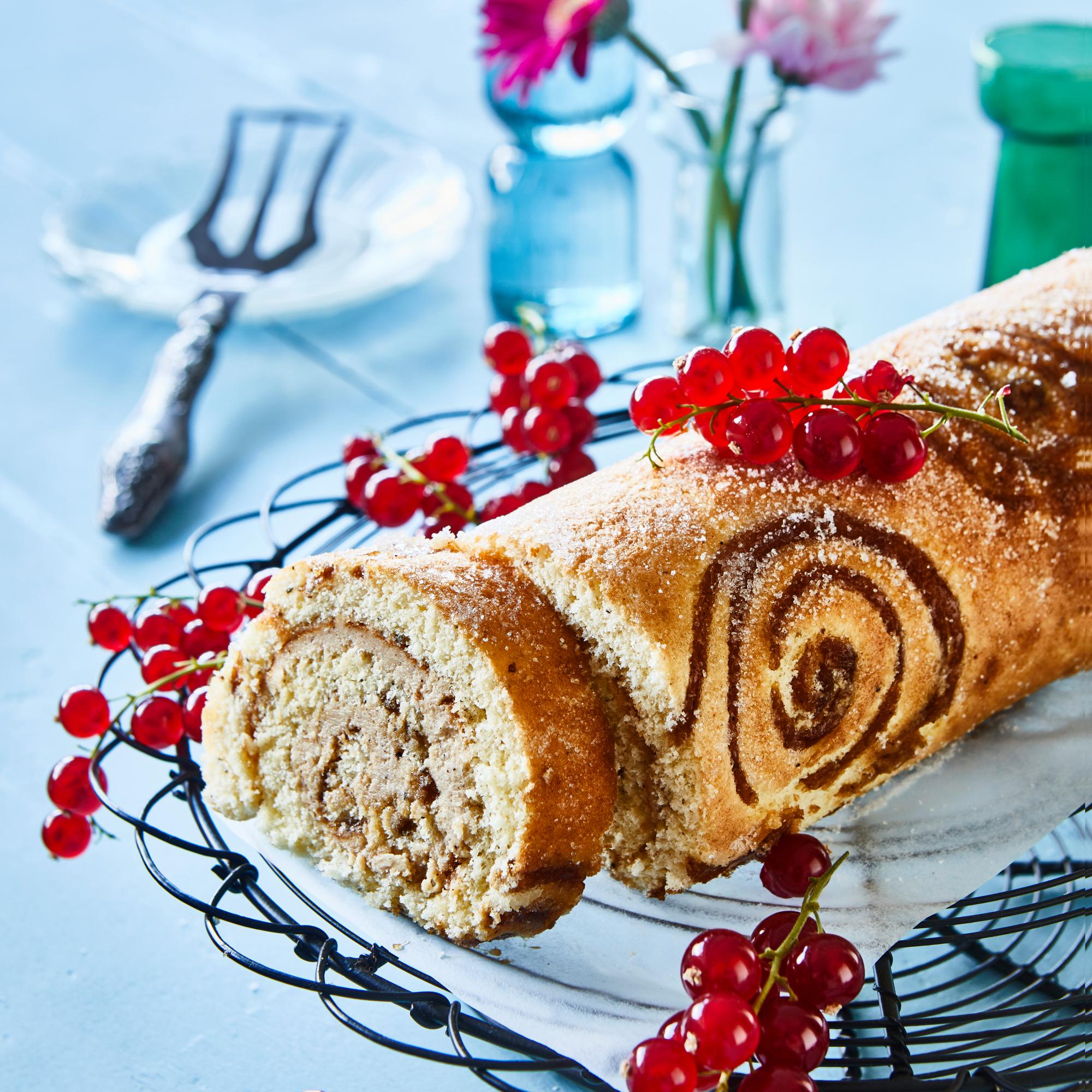 - Levitä seos jäähtyneelle kääretorttupohjalle. Kääri rullaksi. Anna korvapuustikääretortun tekeytyä jääkaapissa tunti ennen tarjoamista.