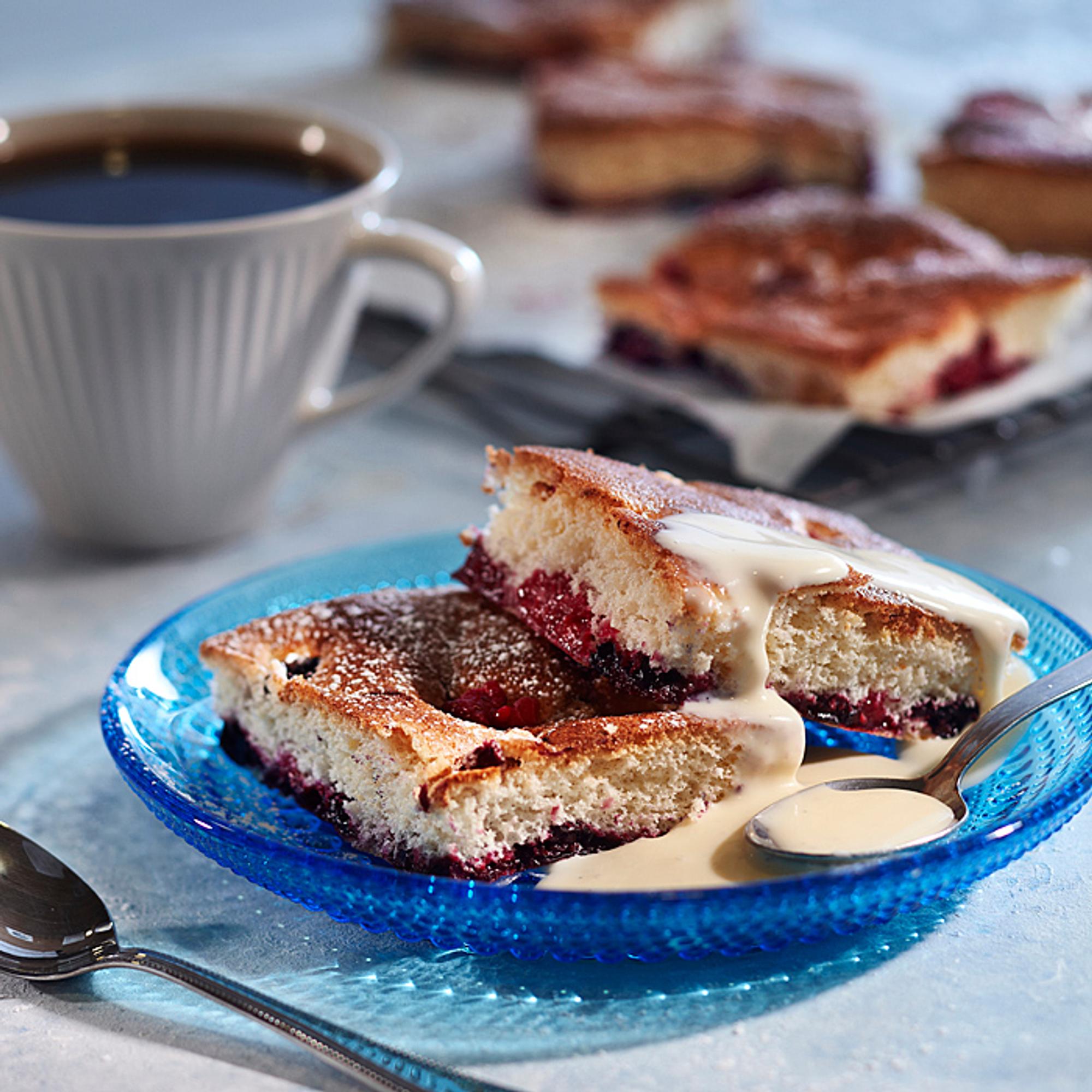Kotoisa marjapiirakka ja vaniljakastike on kahvihetken ihanin herkku! Uunituore piirakka katoaa uunipannulta nopeasti.