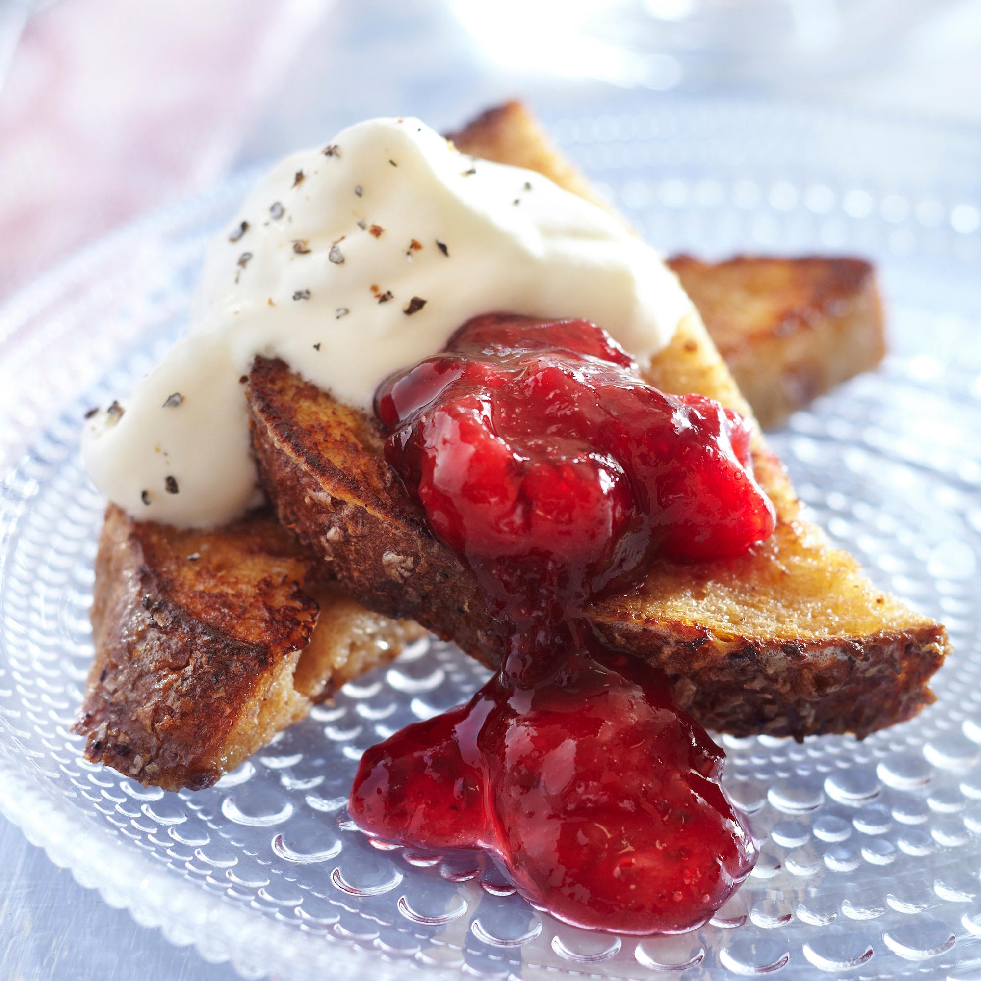 - Tarjoa köyhät ritarit hillon ja/tai kermavaahdon kanssa. Ripottele kermavaahdon päälle halutessasi kardemummaa.