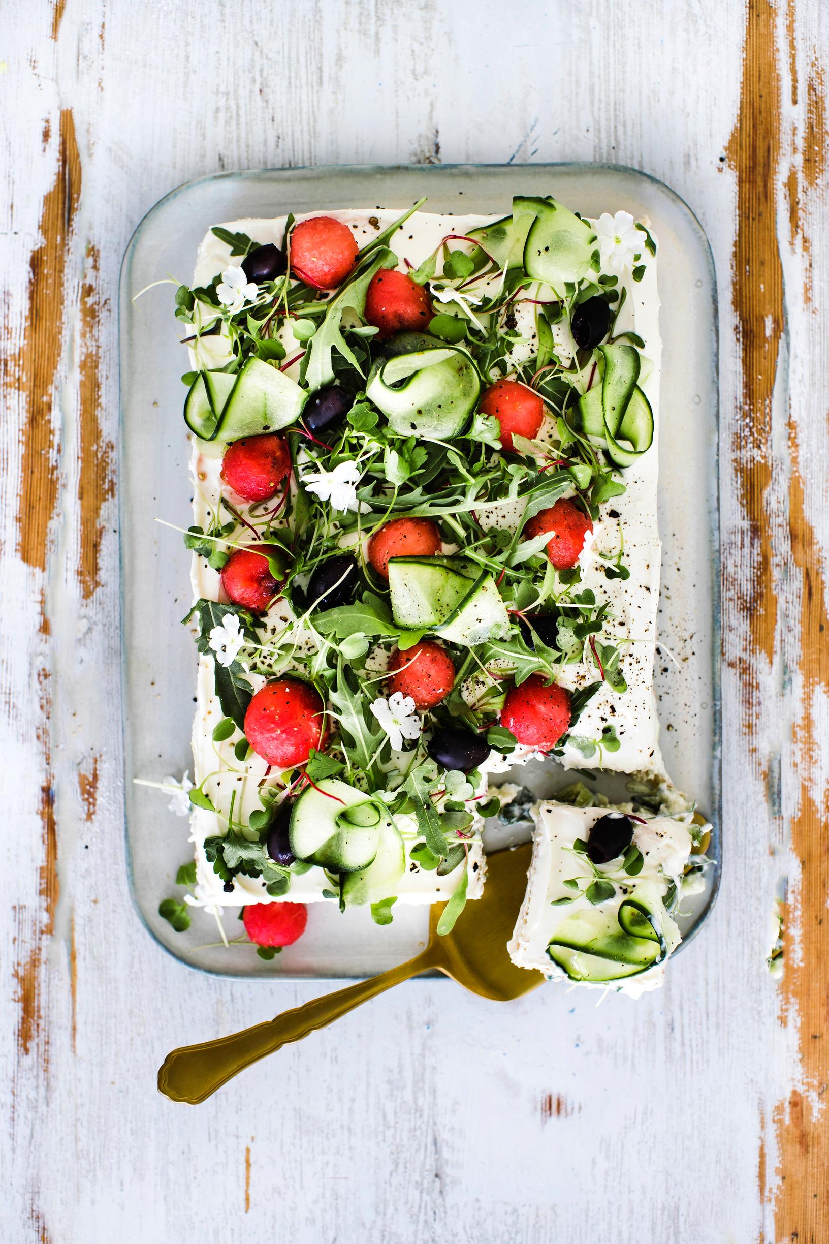Kreikkalainen voileipäkakku – lumoavan raikas maku syntyy tsatsikin ja fetan yhdistelmästä