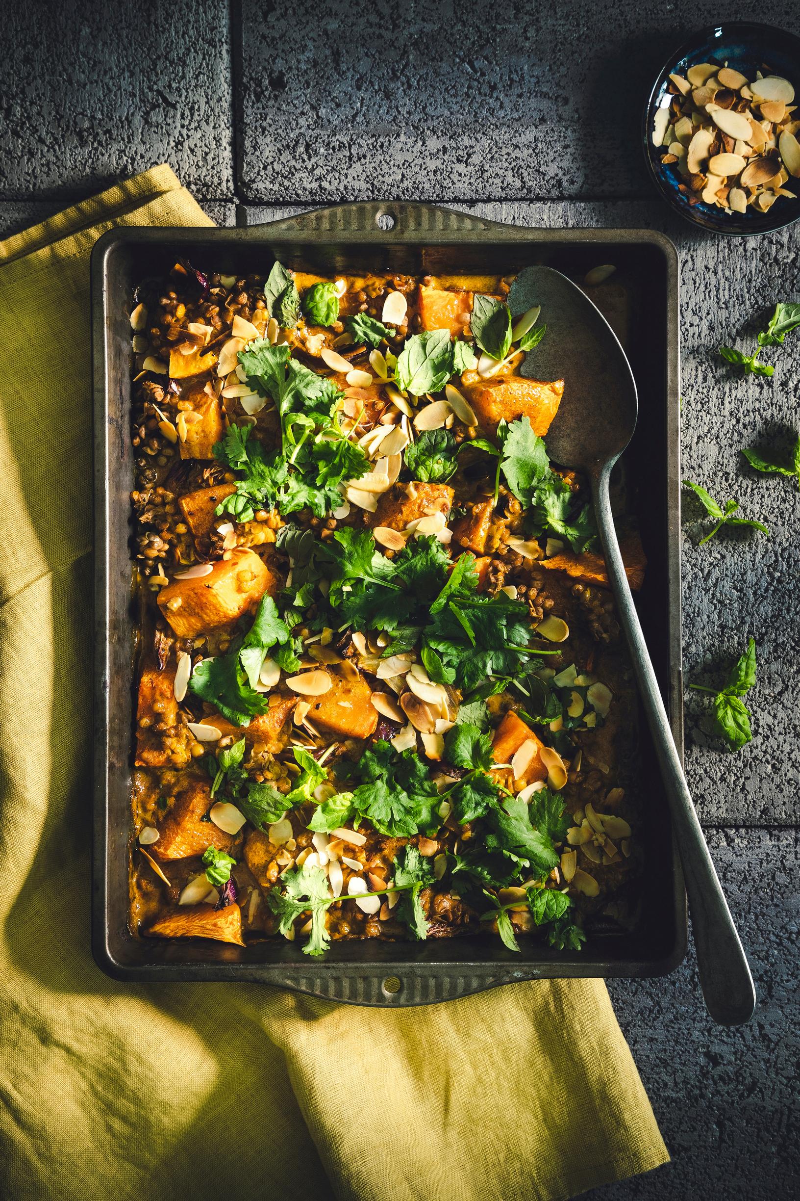 Kurpitsacurry uunissa – intialaisittain maustettu kasvisruoka valmistuu melkein kuin itsestään