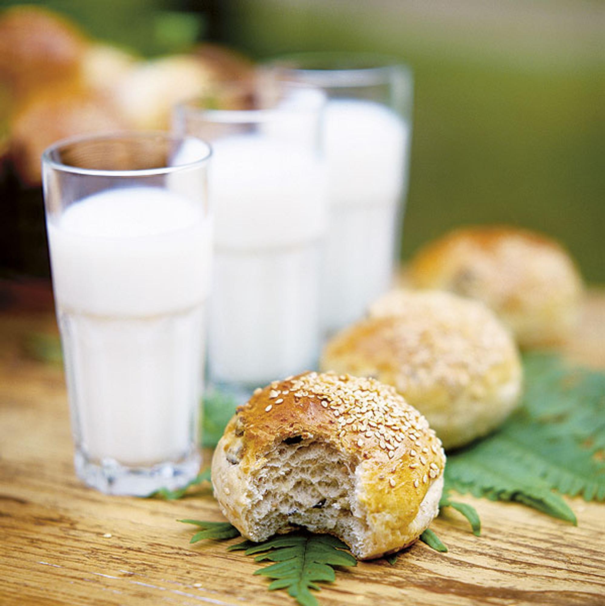 Voitele lampaankääpäsämpylät munalla ja koristele pinnat seesaminsiemenillä. Paista sämpylöitä uunin keskitasossa 225 asteessa noin 12 minuuttia.