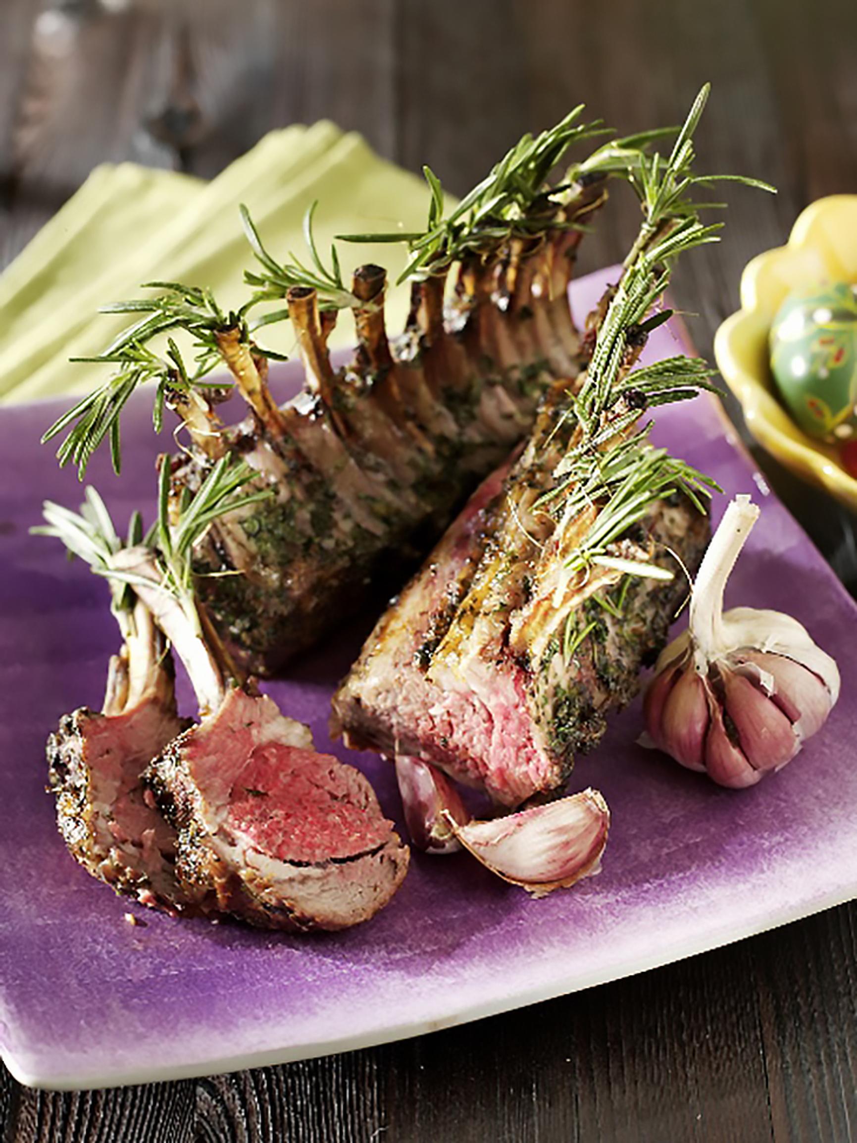 - Leikkaa kyljykset irti luitten välistä juuri ennen tarjoilua tai jätä se pääsiäispöydän ohjelmanumeroksi. Laita kyljykset ja valkosipulit tarjoiluastialle.