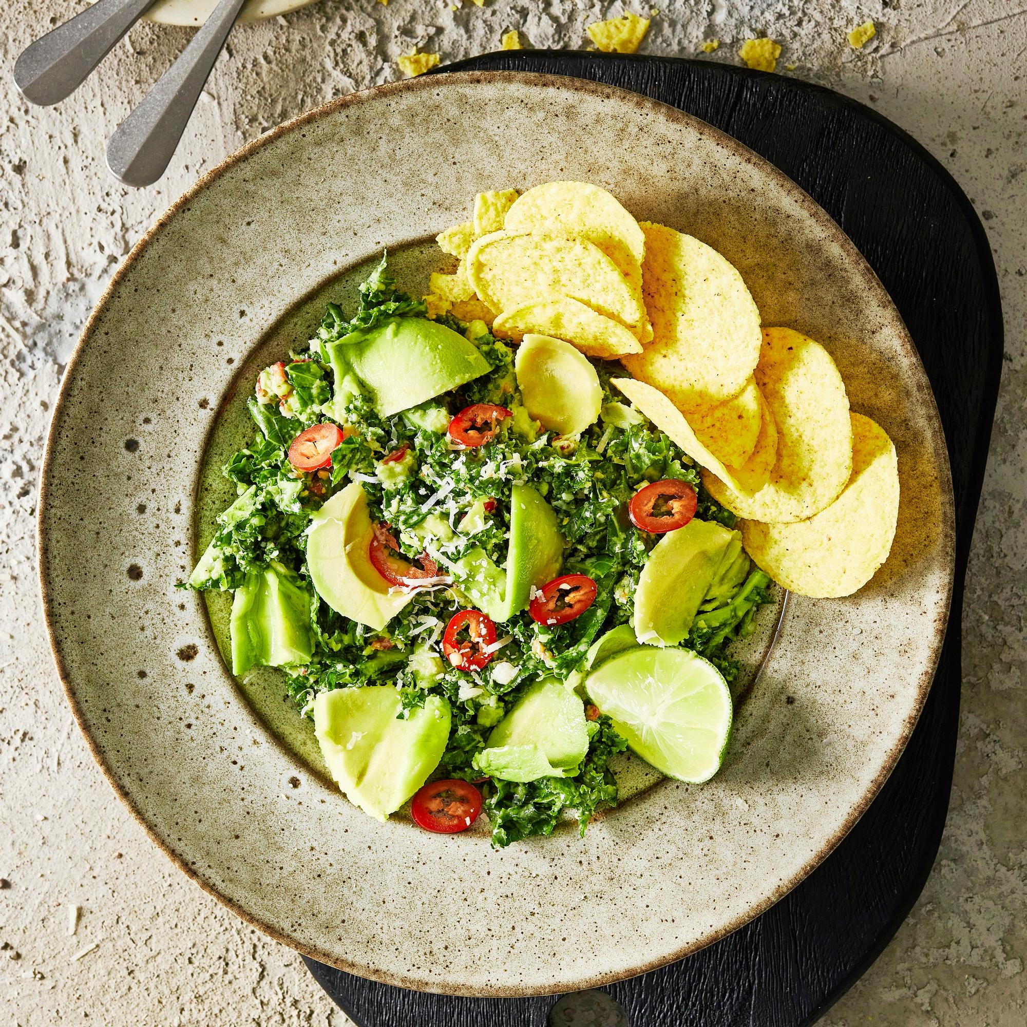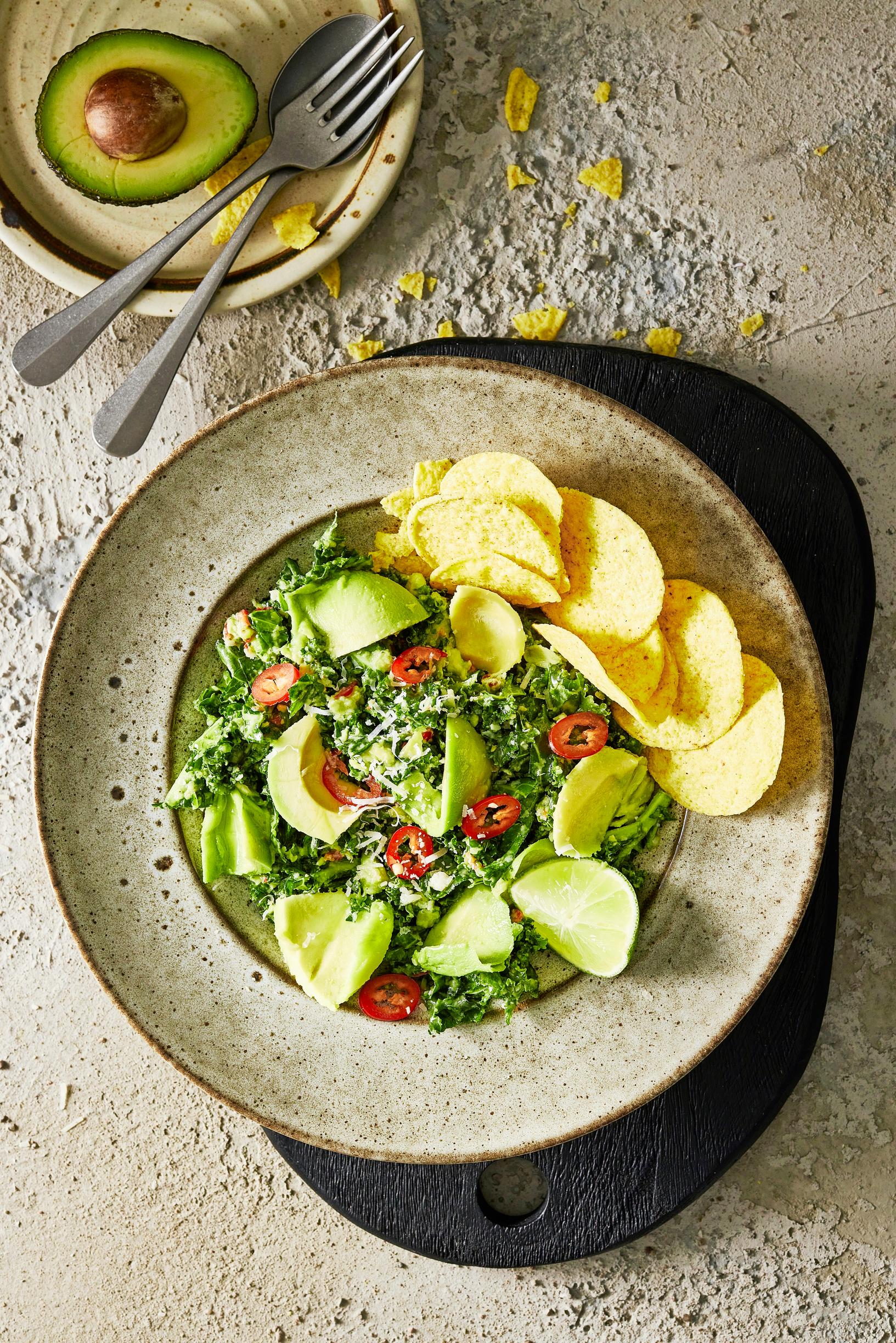 Lehtikaali-avokadosalaatti on raikas, täyteläinen ja näyttävä. Limen ja chilin piristämä salaatti sopii tarjottavaksi sellaisenaan tai lisukkeena.