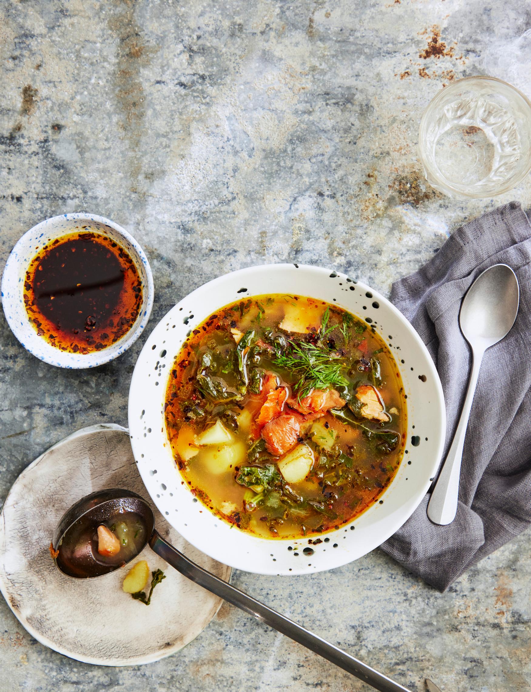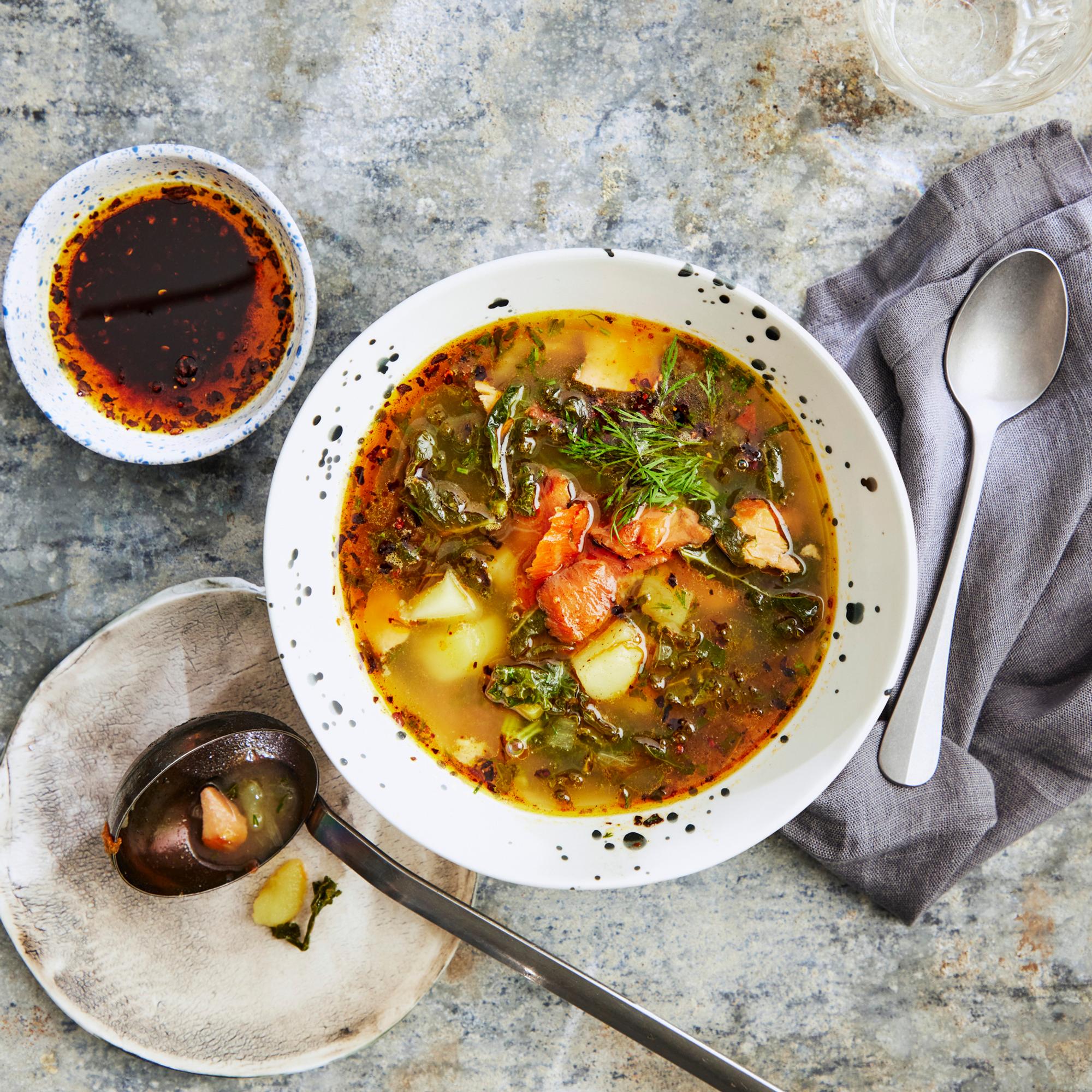 Lehtikaali-savulohikeitto on kaikkea mitä hyvältä keitolta kaipaat – maistuu niin arkena kuin viikonloppuna