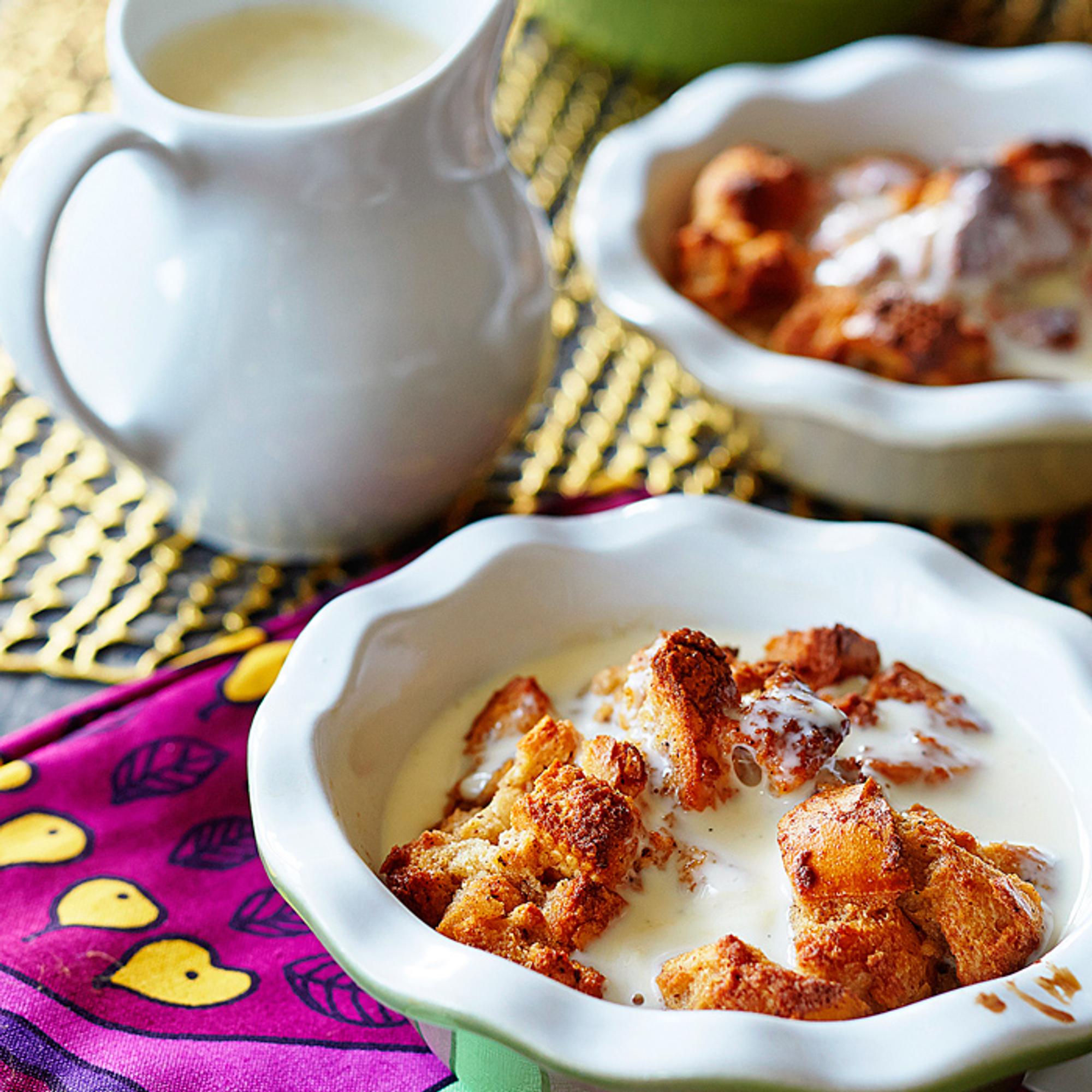 Tarjoa leipävanukas haaleana bourbonkastikkeen kera.