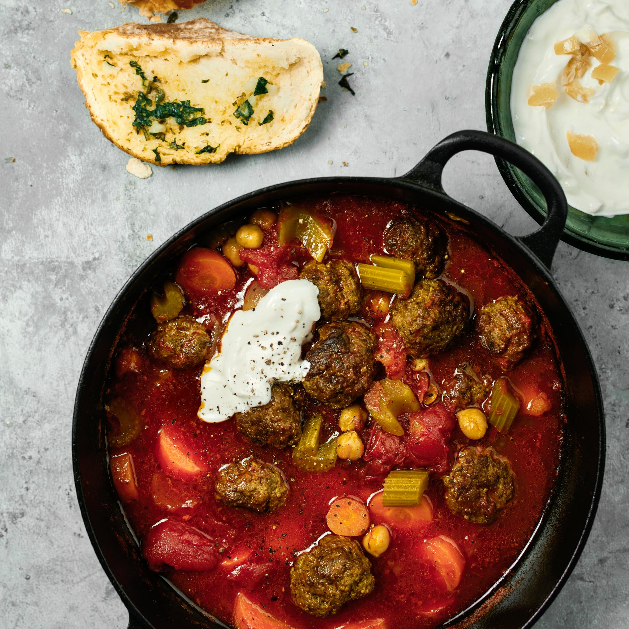 Lihapyörykät hyppäsivät mausteiseen tomaattikylpyyn – marokkolainen lihapullapata on talviruokaa täydellisimmillään