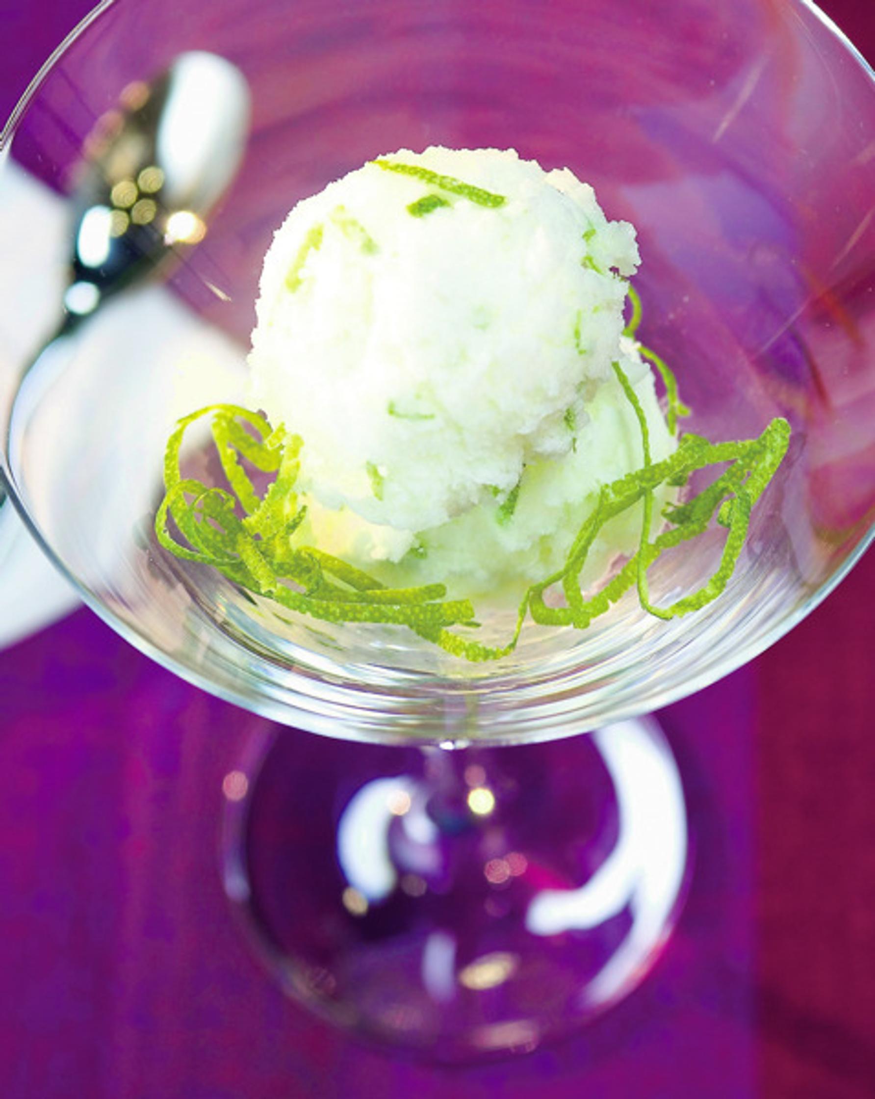 - Kauho limesorbetti jalallisiin laseihin juuri ennen tarjoamista.