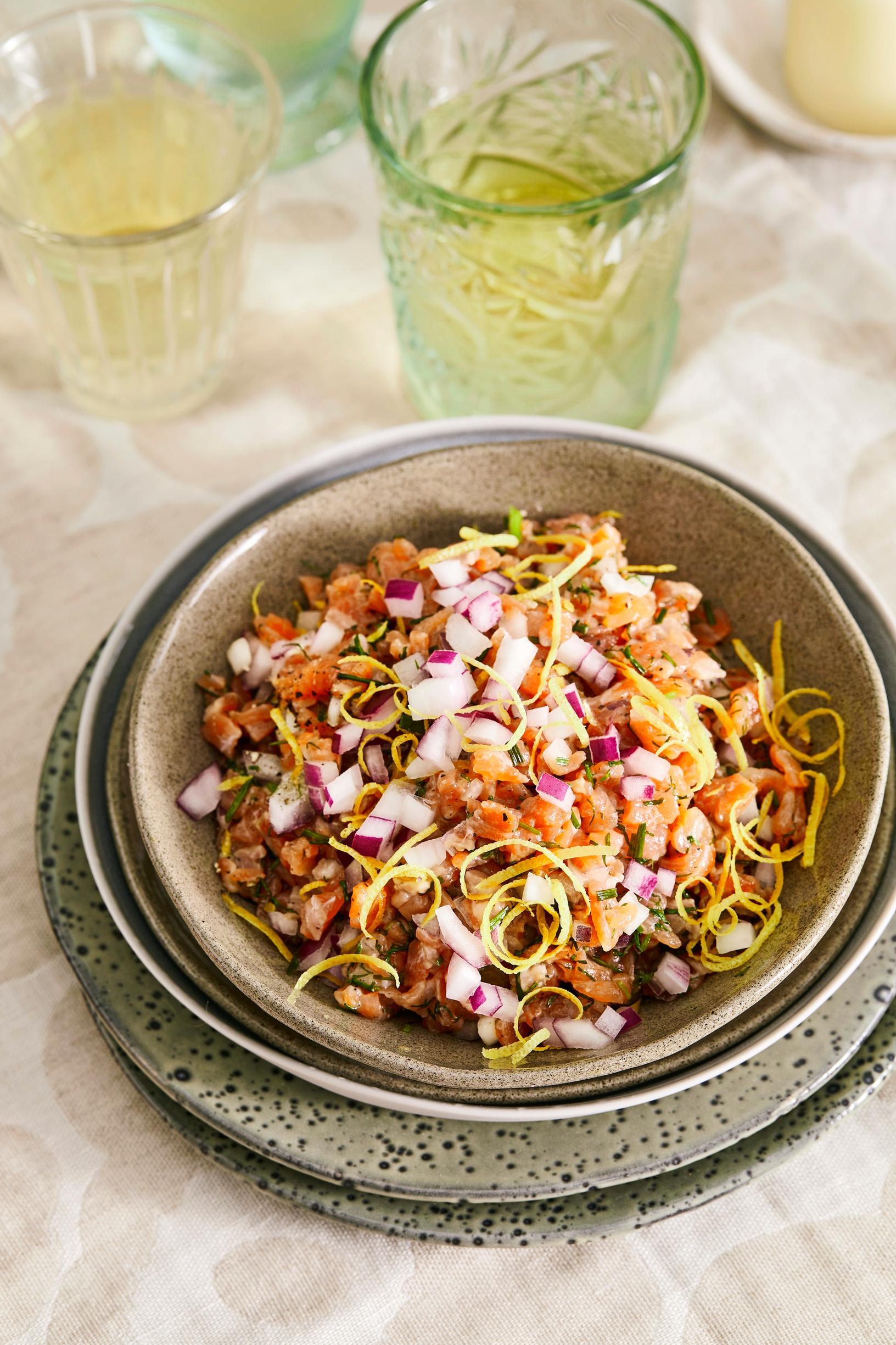 Raikkautta kalapöytään – sitruunainen limoncello-lohitartar on ihanan helppo valmistaa
