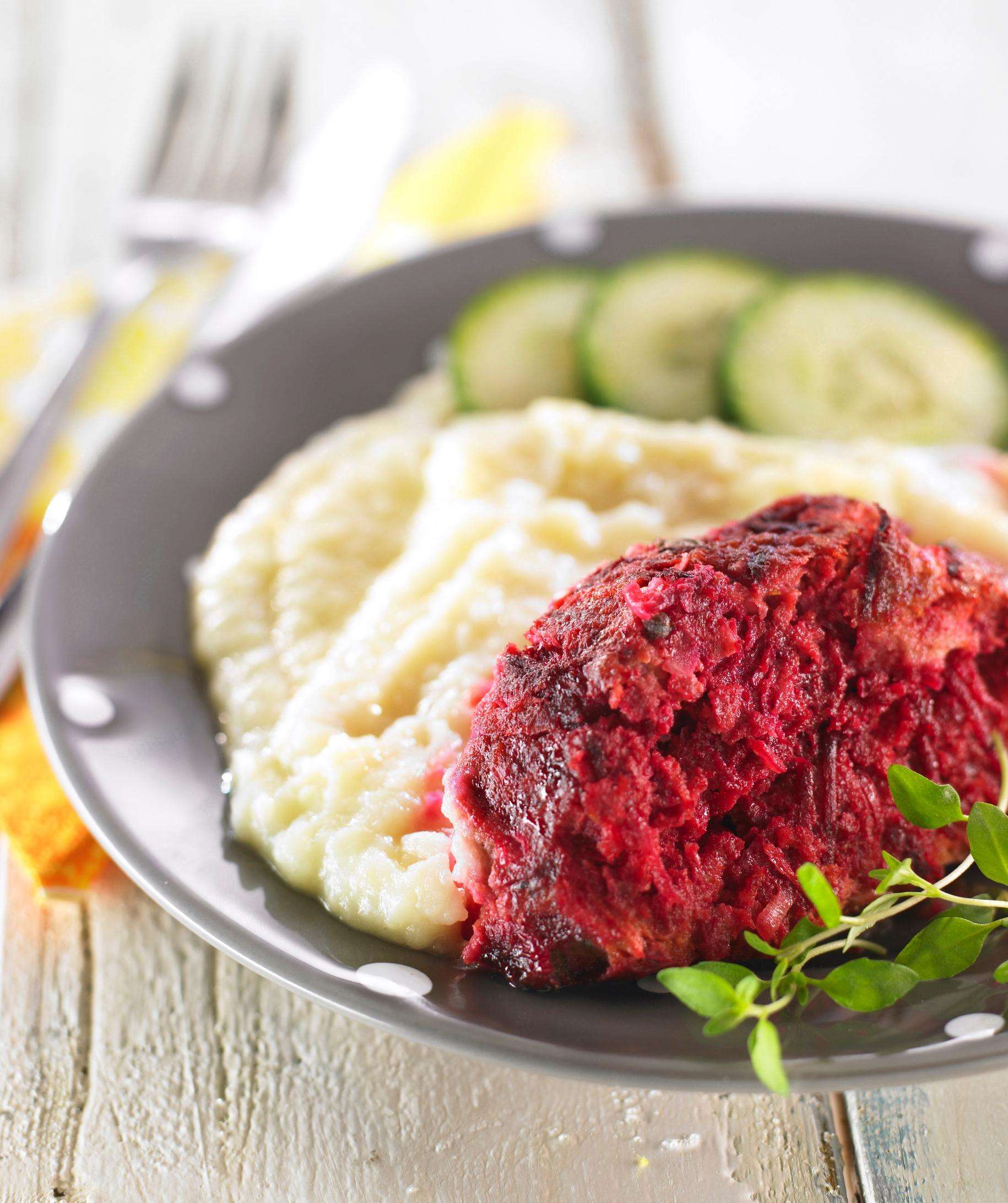 Perinteisen lihamurekkeen maukkaampi versio syntyy, kun maustat murekemassan punajuurelle lindströminpihvien tapaan.