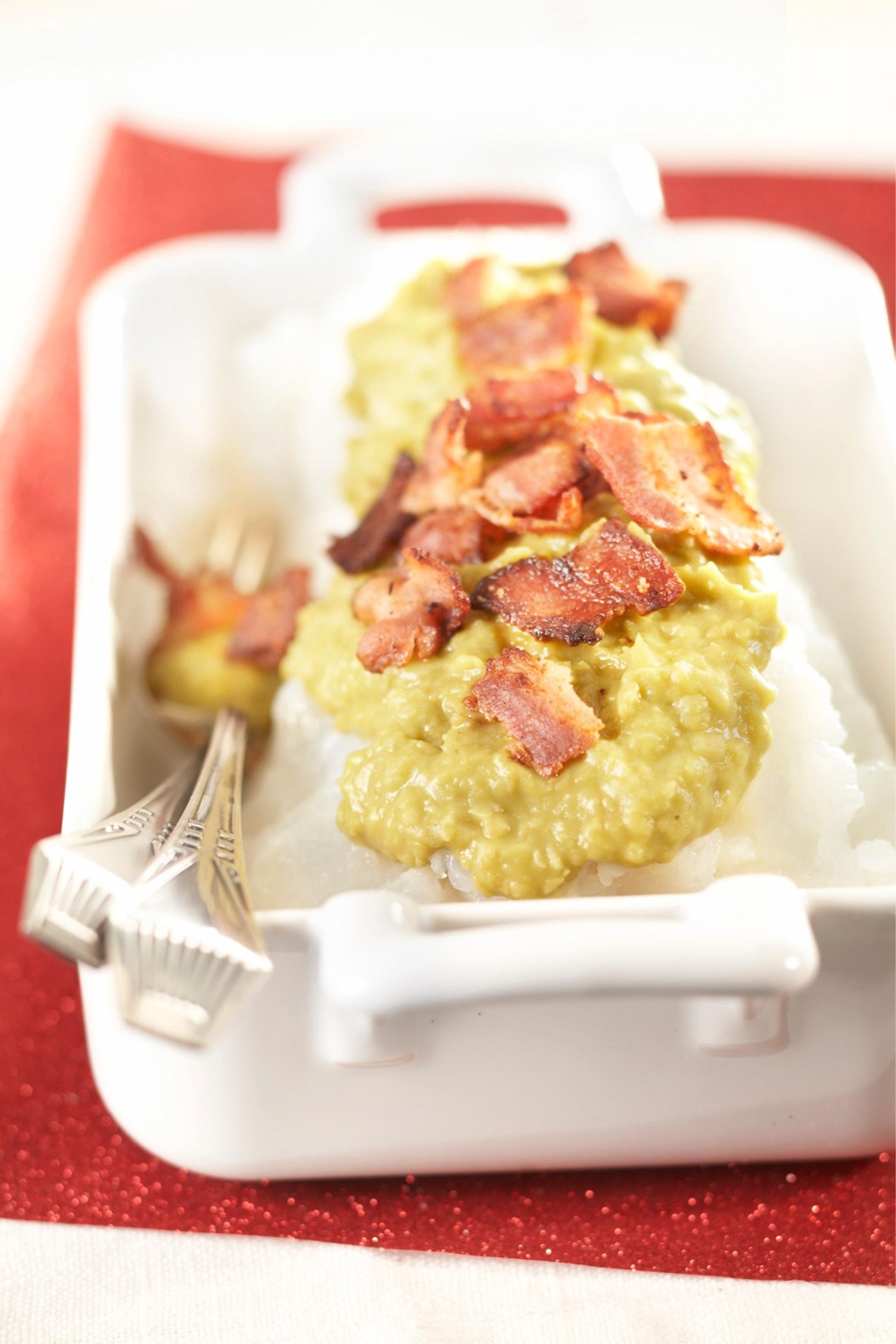 Pekonin ja hernesoseen kera tarjottu lipeäkala maistuu herkulliselta. Tapaninpäivän klassikkoruoka saa lisäkkeistä uuden vivahteen.