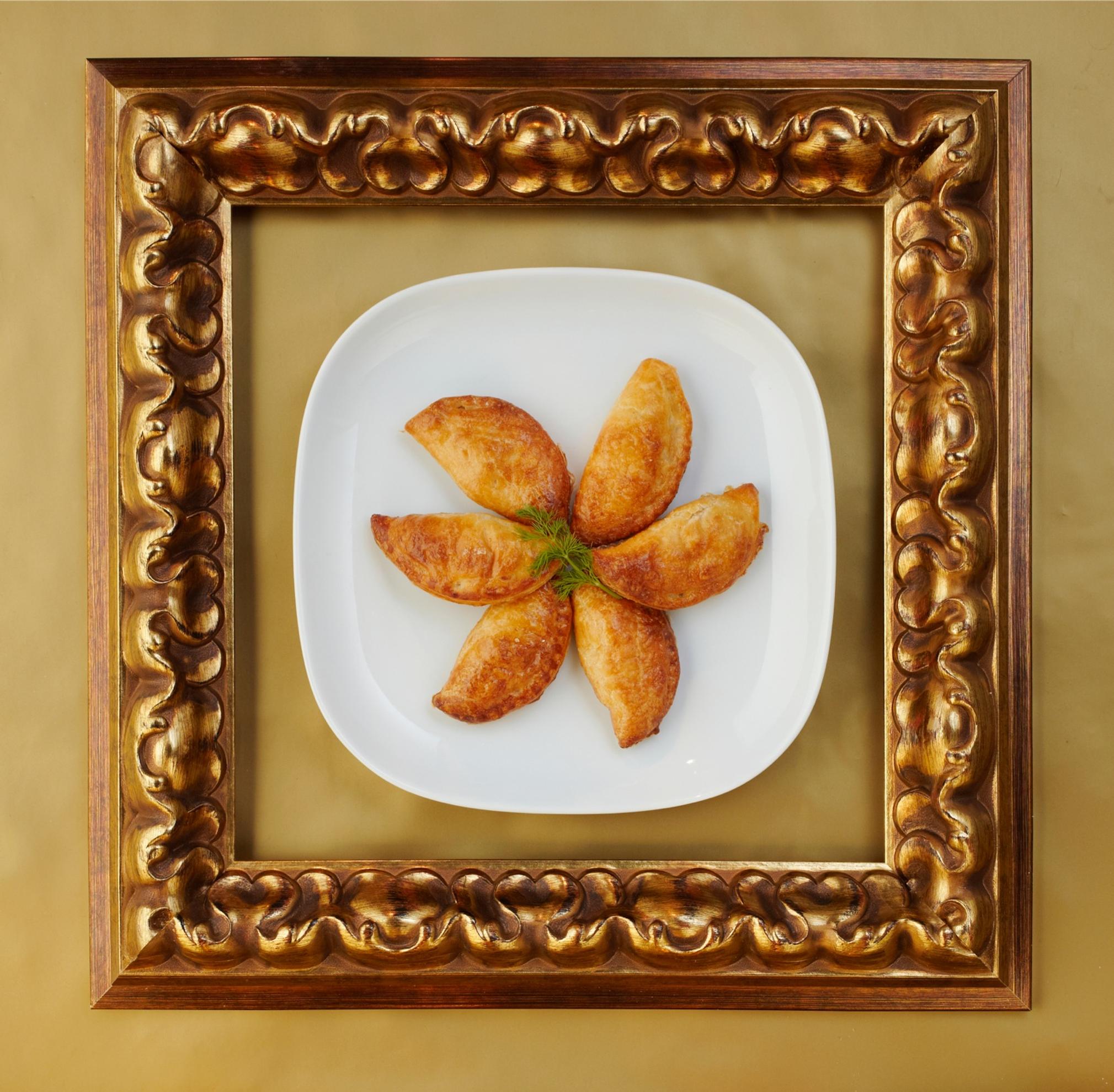 Kauli taikinasta 3 mm paksuinen, suorakaiteen mallinen levy jauhotetulla alustalla. Leikkaa taikinapyörällä levystä neliöitä (n. 10 cm x 10 cm). Täytä neliöt lohitäytteellä, taita kolmioksi ja nipistele reunat hyvin kiinni.