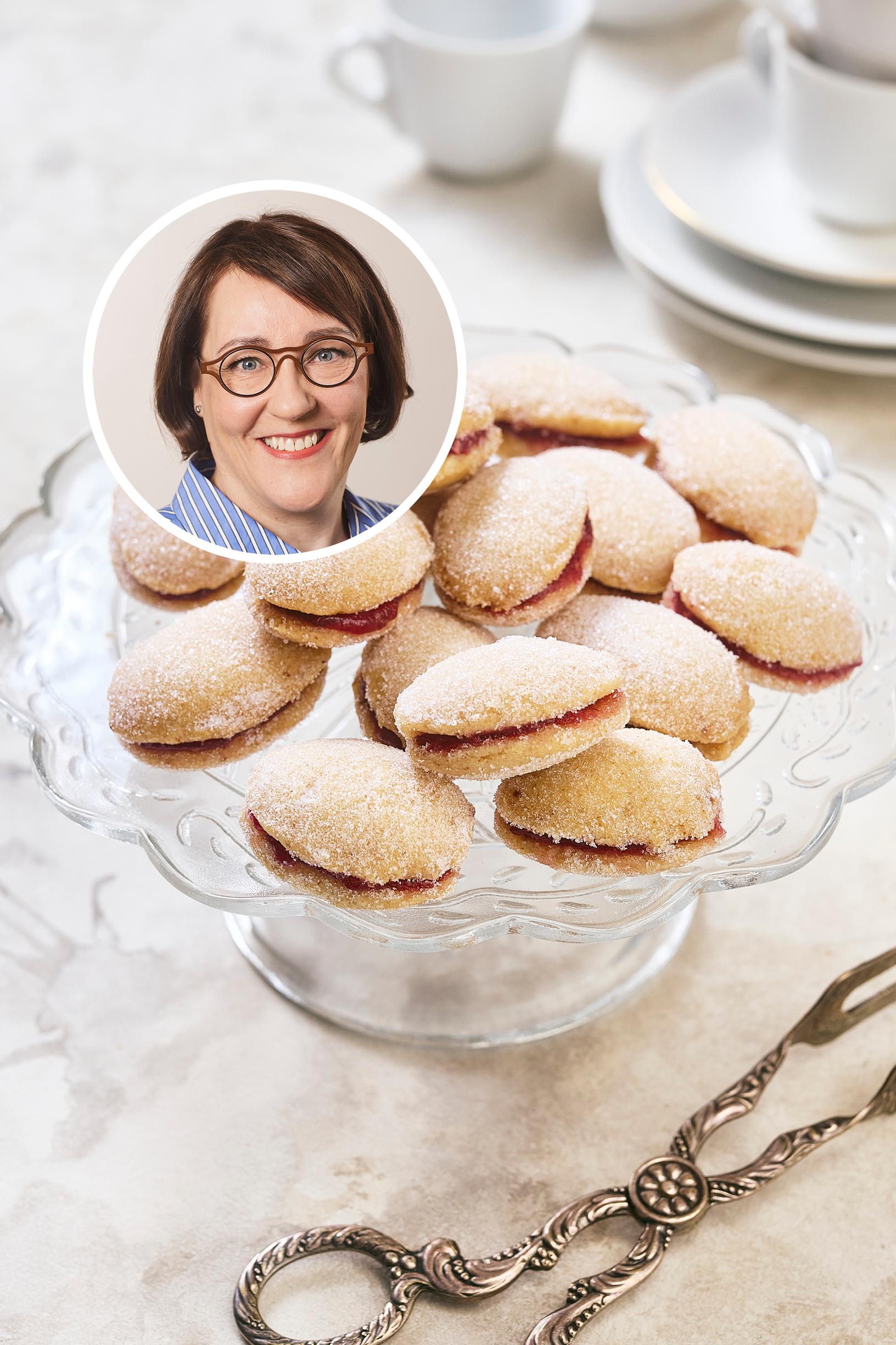 Suosikkitäytteeni on perinteinen vadelmamarmeladi, mutta pikkuleivät voi täyttää mainiosti myös esimerkiksi omena-, päärynä-, kirsikka- tai luumumarmeladilla. Maistuvia vaihtoehtoja ovat lisäksi lemon curd, pistaasitahna tai vaikka nutella. Sivelen täytettä vain joka toisen puolikkaan tasaiselle puolelle ja yhdistän ne täyttämättömiin – näin käsittelen herkkiä pikkuleipiä mahdollisimman vähän.