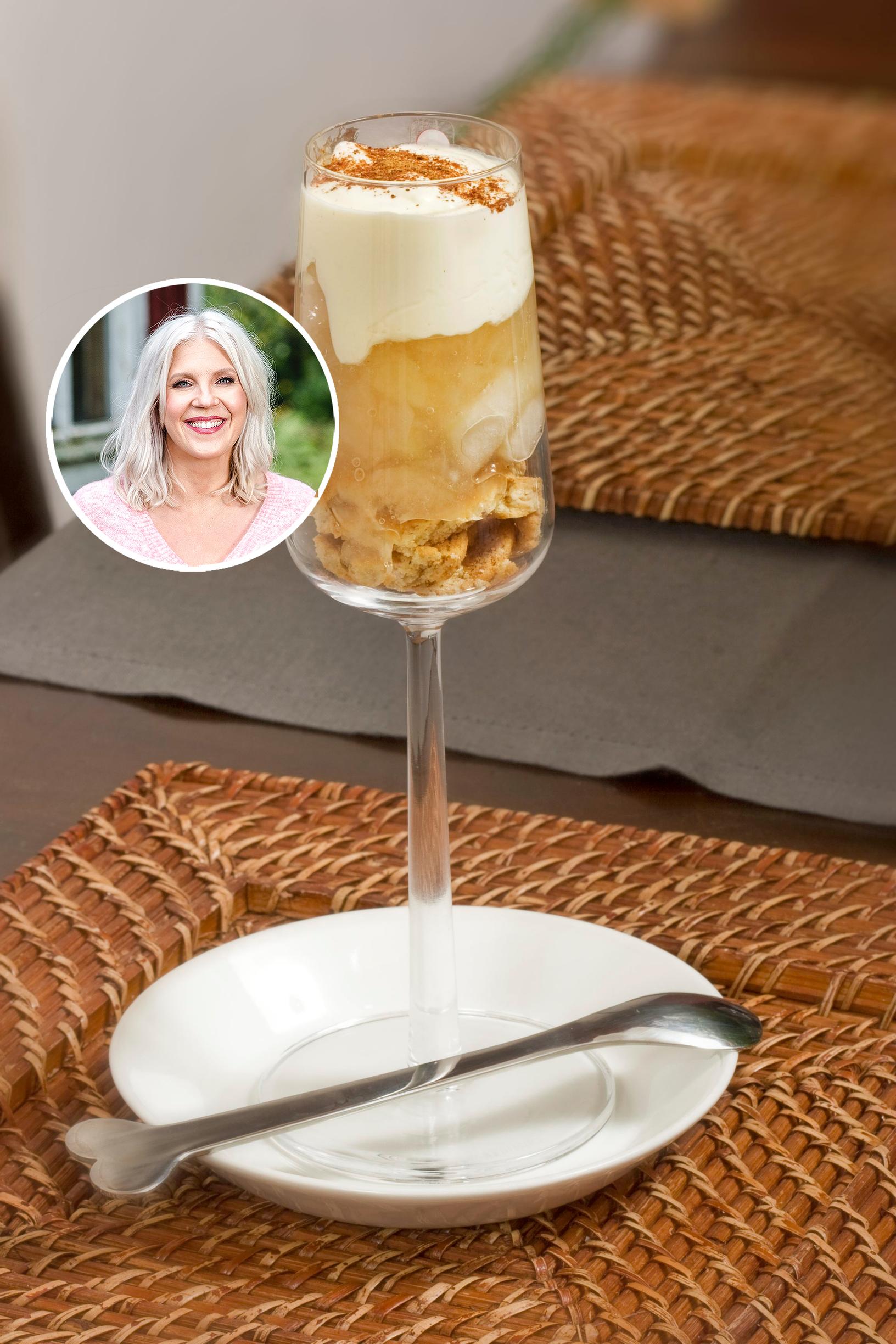 - Kaada vaahdotettua vaniljakastiketta ainesten päälle. Lisää lopuksi jälkkärin pinnalle ripaus kanelia.