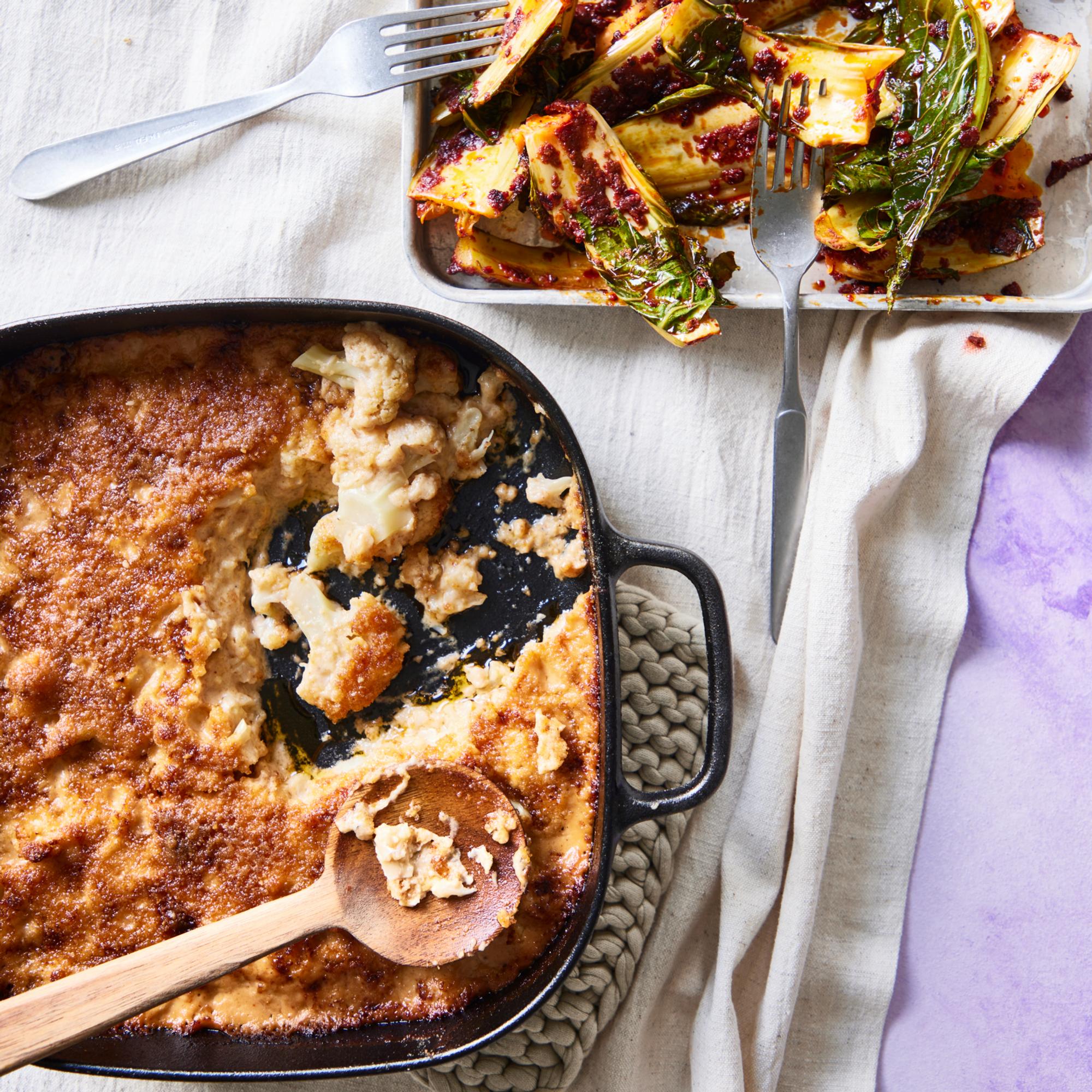 Loppukesän lempivuoka! Mac & cheese syntyy kukkakaalista – tarjoile nduja-kukkakaalinlehtien kanssa