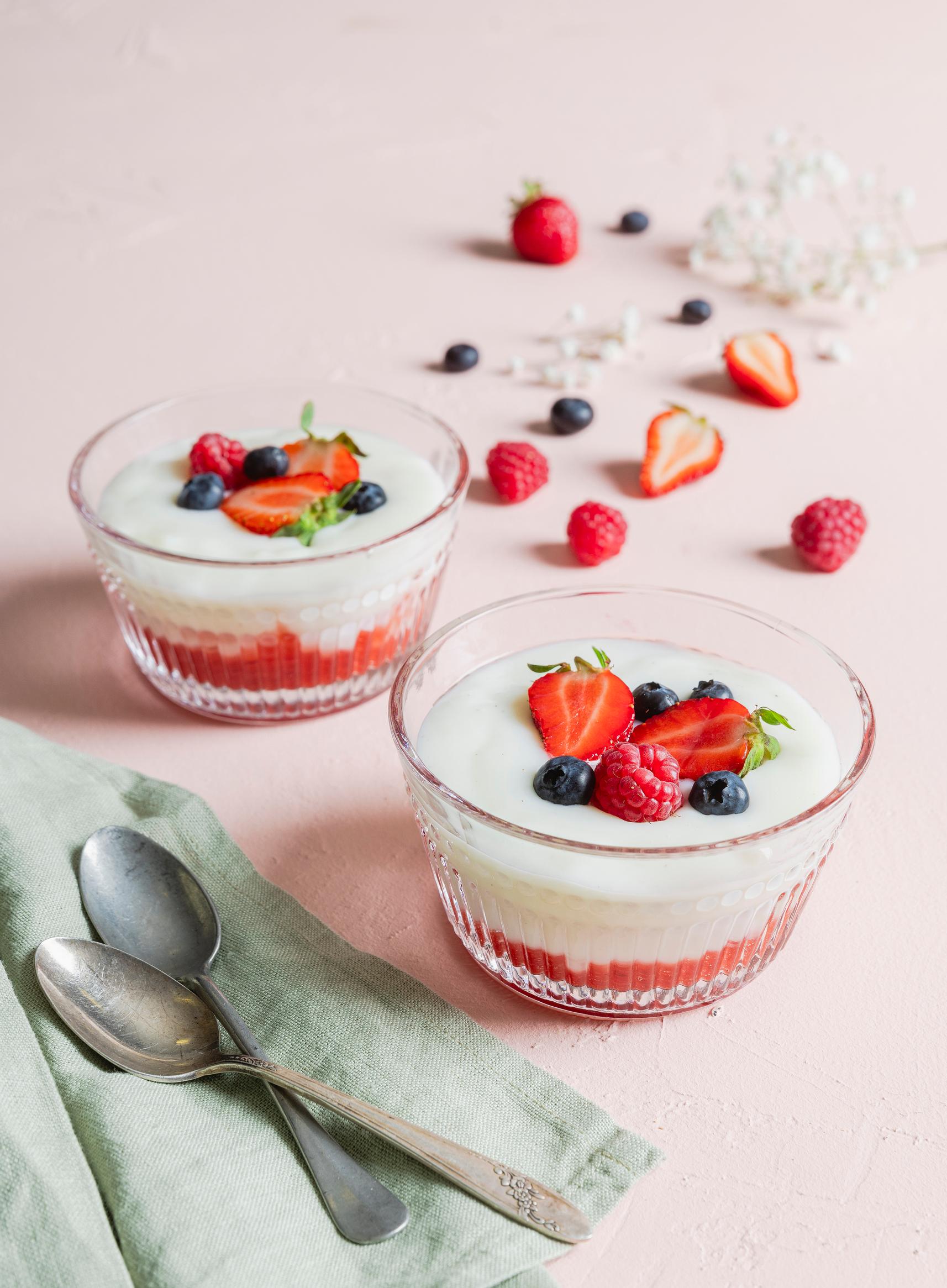 Maitokiisseli vie nostalgiselle makumatkalle – pehmeän vaniljainen herkku tarjotaan marjojen kera