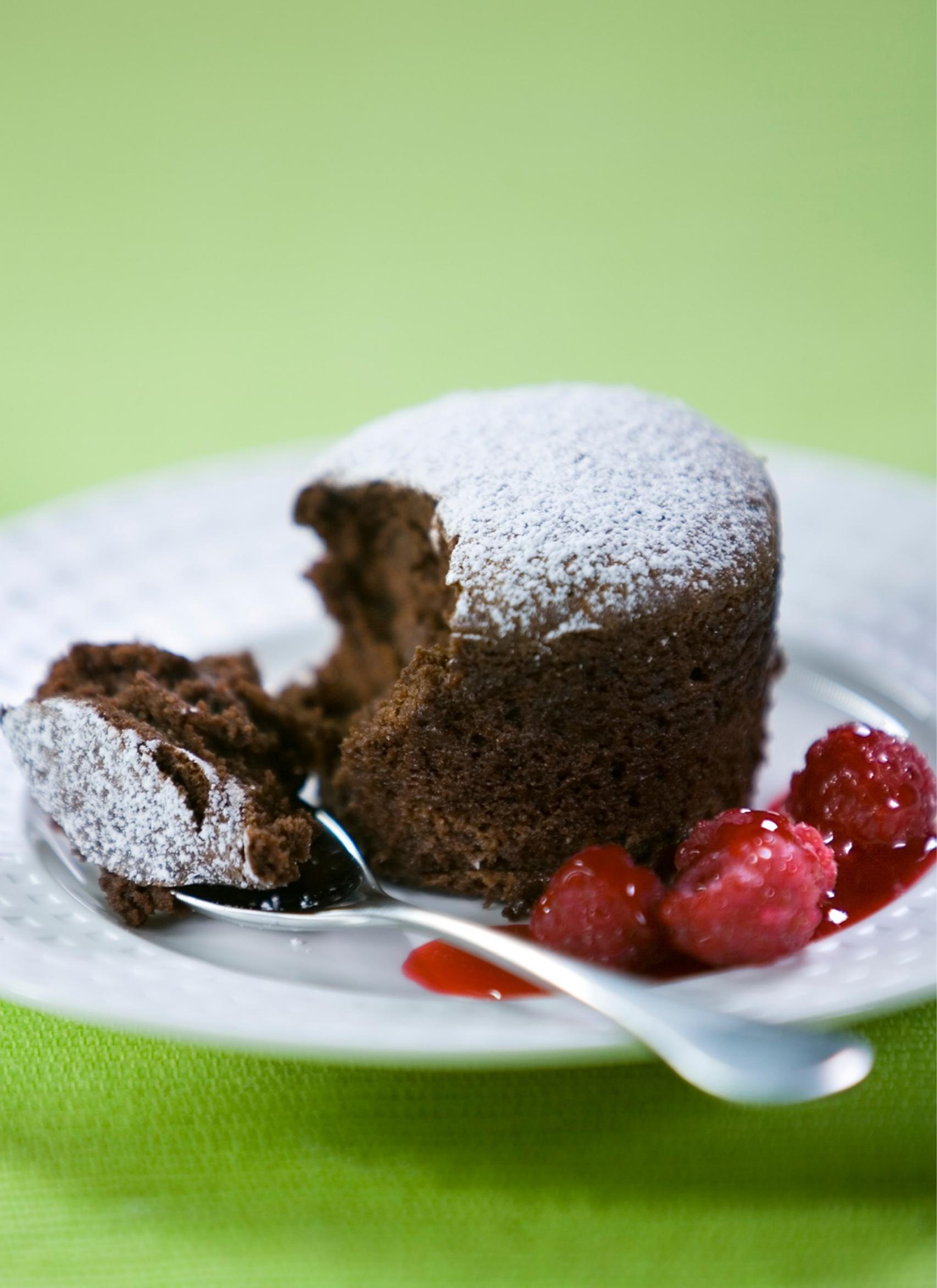 Kumoa mämmi-suklaakakkuset tarjoilulautasille ja siivilöi ohut kerros tomusokeria pinnalle. Tarjoa vadelmien kanssa.