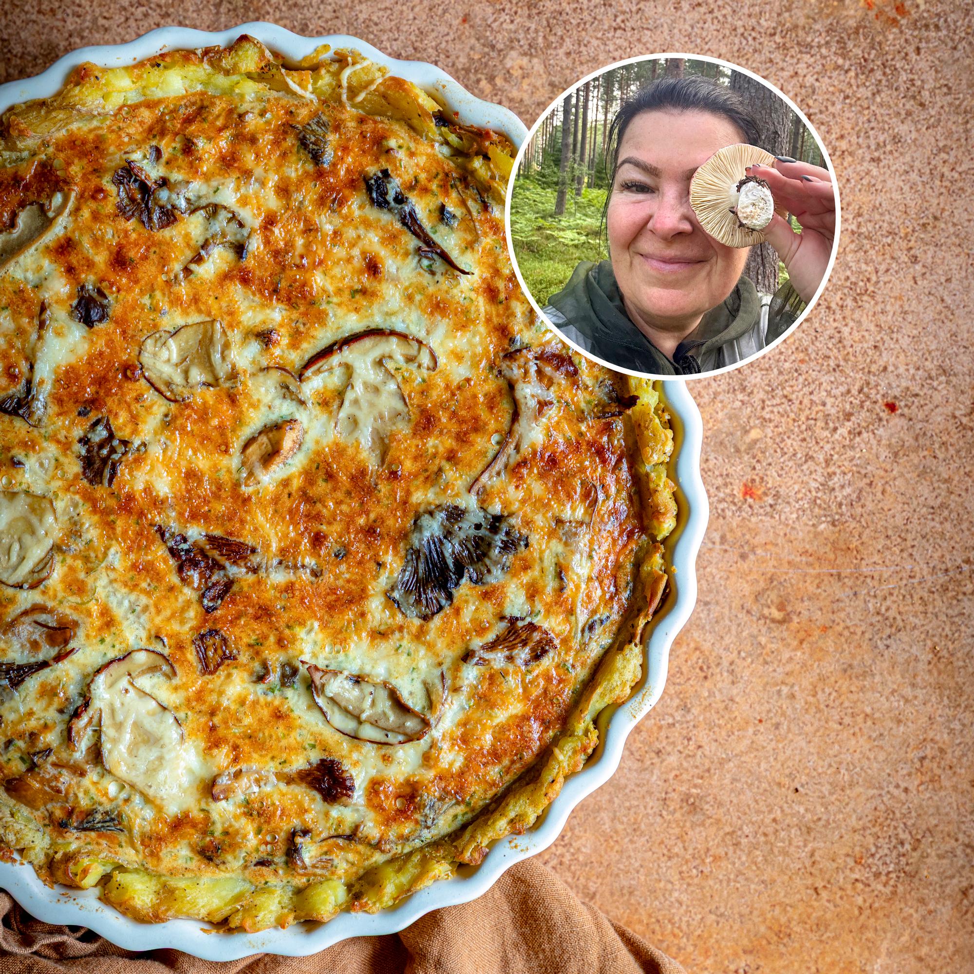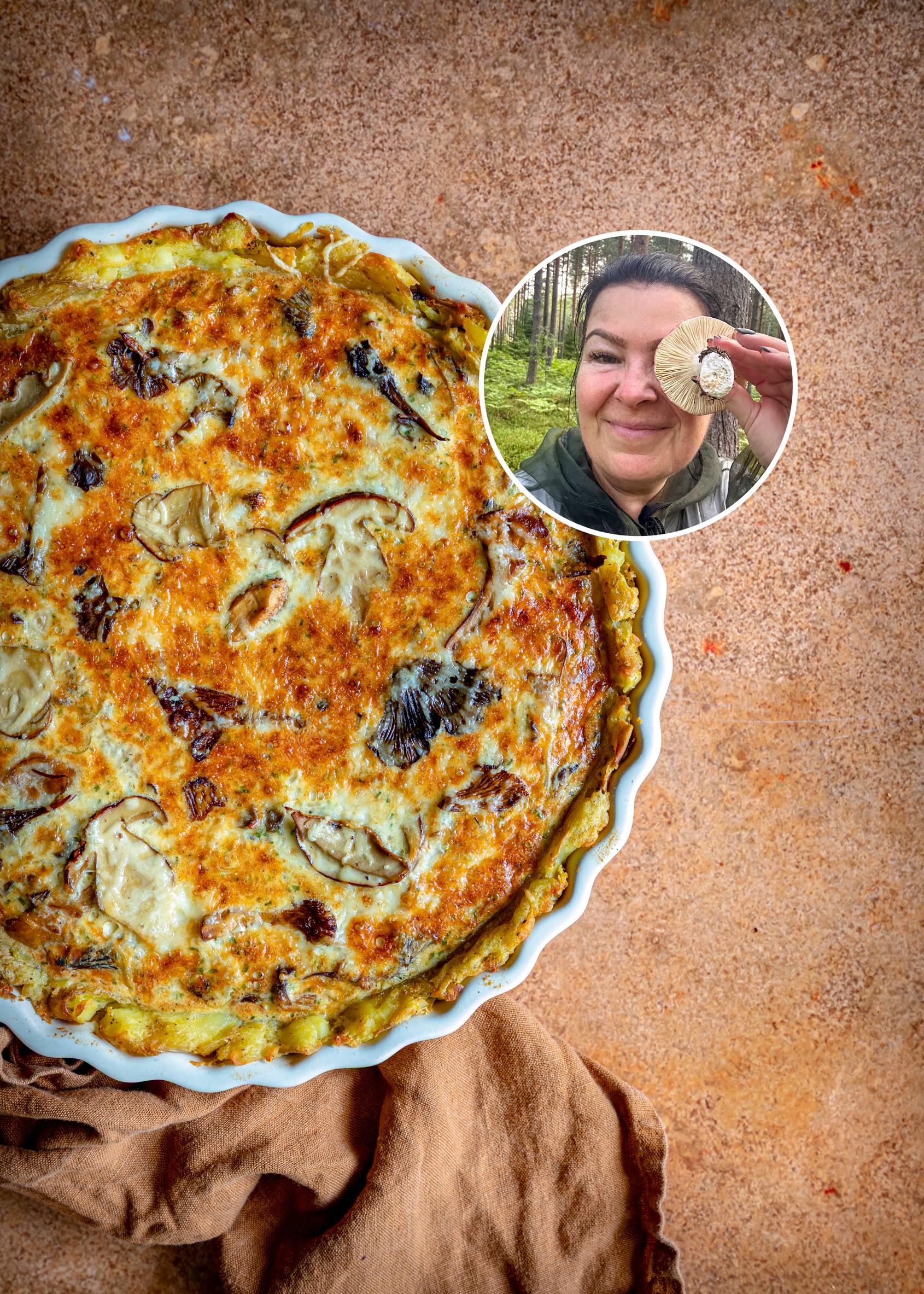 Mari Moilasen sienipiirakka – reseptin juju on murskatuista puikulaperunoista tehty piirakkapohja