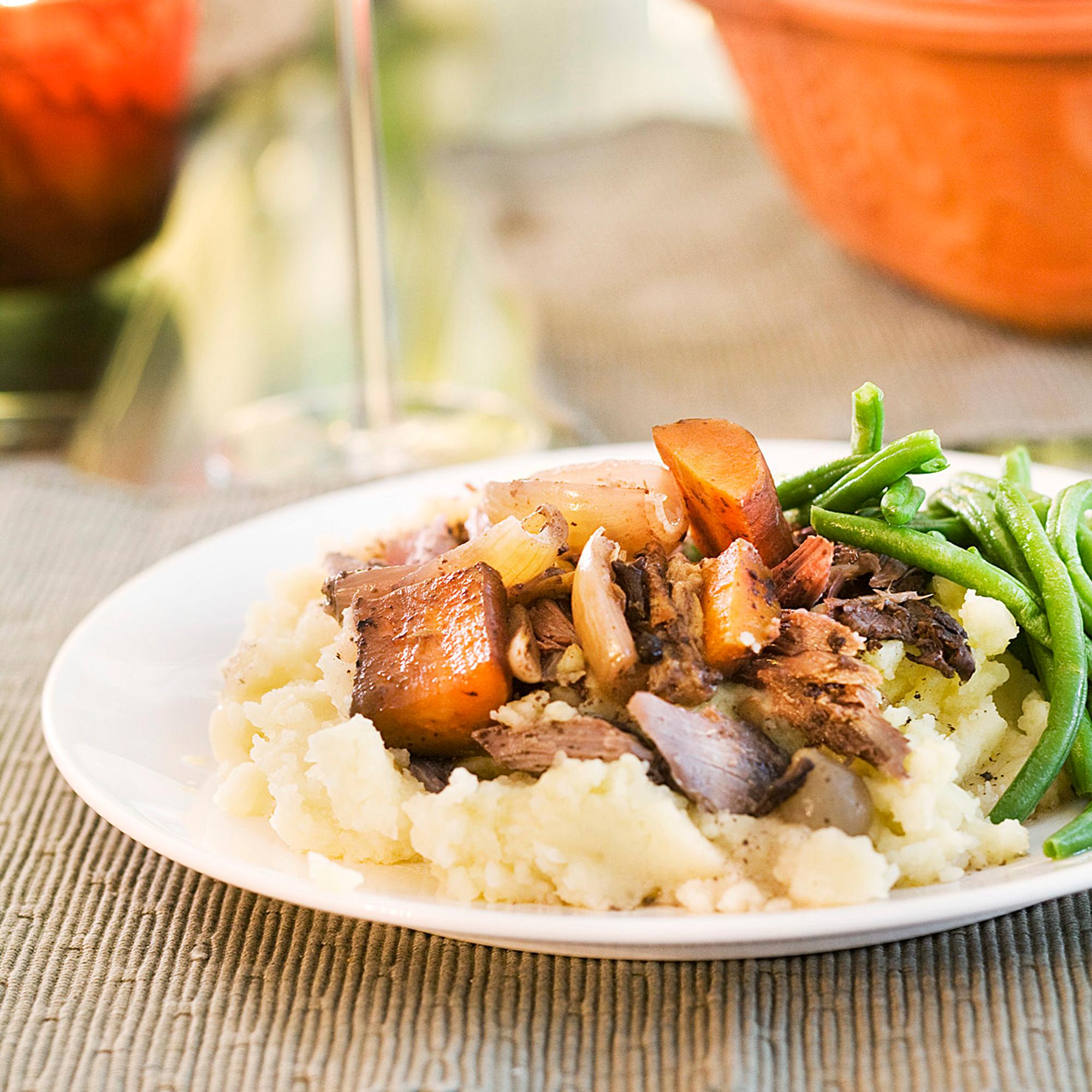 Tarjoa mausteinen jänispata tryffeliöljyllä maustetun perunamuusin ja keitettyjen vihreiden papujen kera.