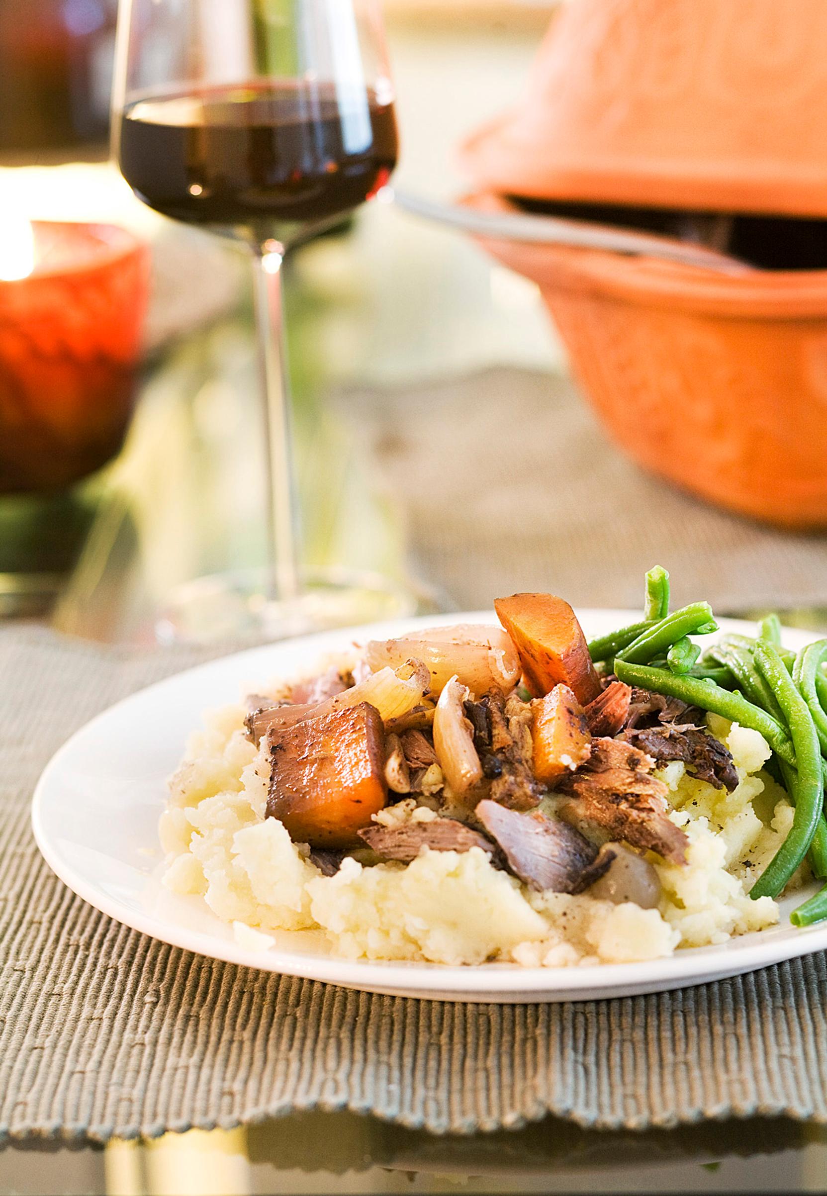 Lisää savipataan kuoritut, reiluiksi paloiksi leikatut kasvikset, kokonaiset hillosipulit ja mausteet.