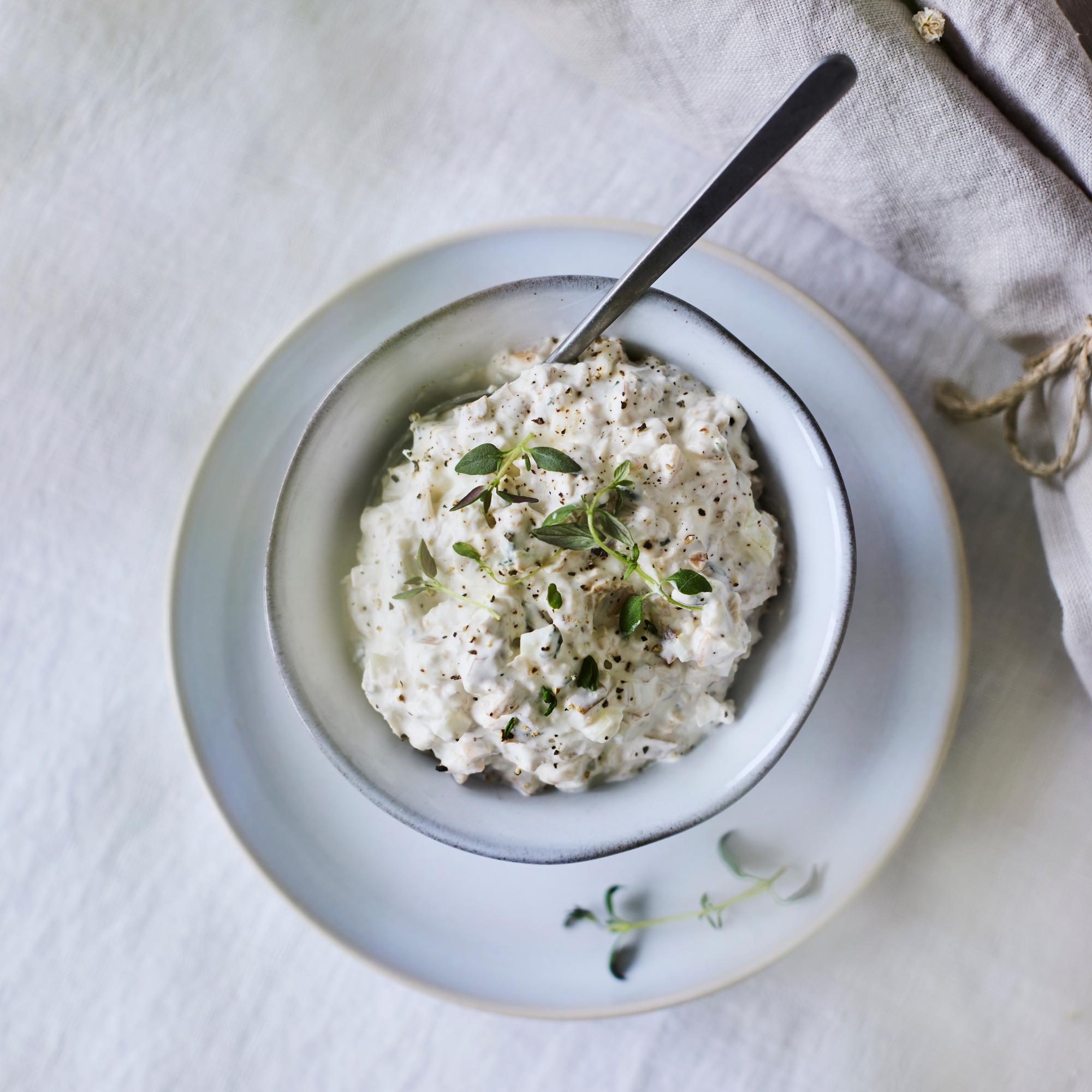 - Sekoita vaahtoon mausteet, sienet ja sipulit. Anna maustua jääkaapissa kelmulla peitettynä vähintään 15 minuuttia ennen tarjoilua. Tarkista maku ja lisää suolaa tarvittaessa.