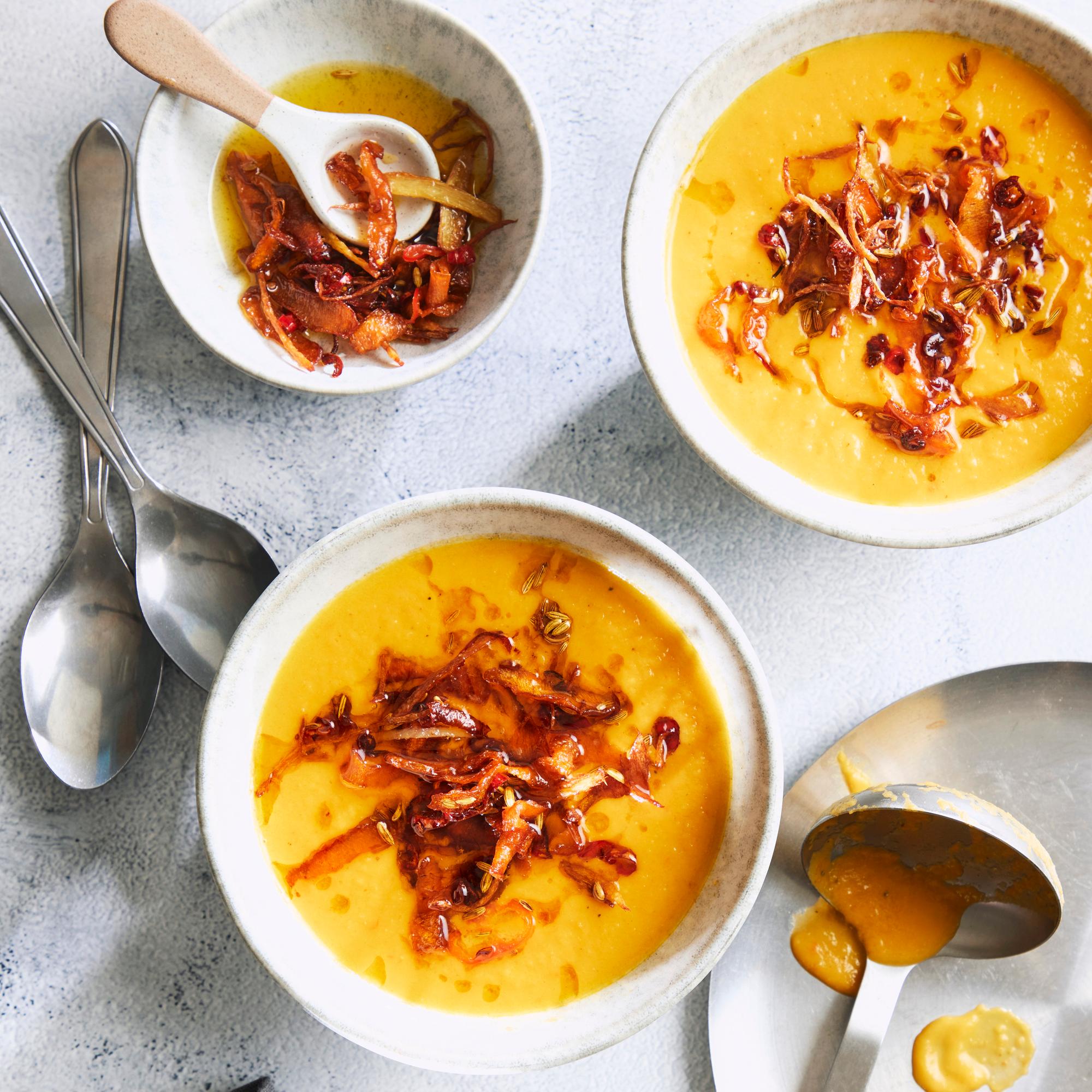 Miso-porkkanakeitto – samettinen soppa viimeistellään herkullisella porkkanankuoripaistoksella