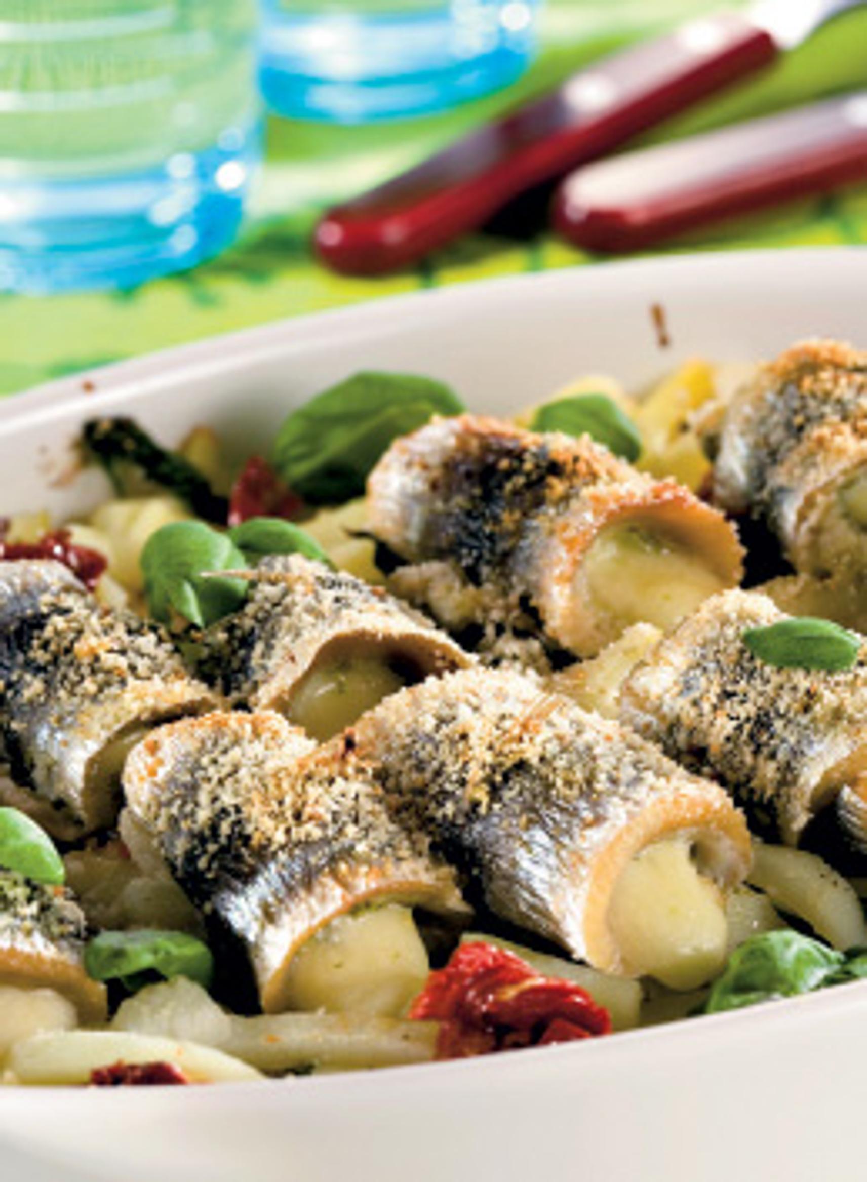Ota perunavuoka uunista. Nosta silakkarullat perunoiden päälle. Ripottele kalarullille korppujauhot ja purista päälle sitruunamehua. Jatka mozzarella-silakkarullien paistamista uunissa noin 15 minuuttia, kunnes perunat ovat kypsiä.