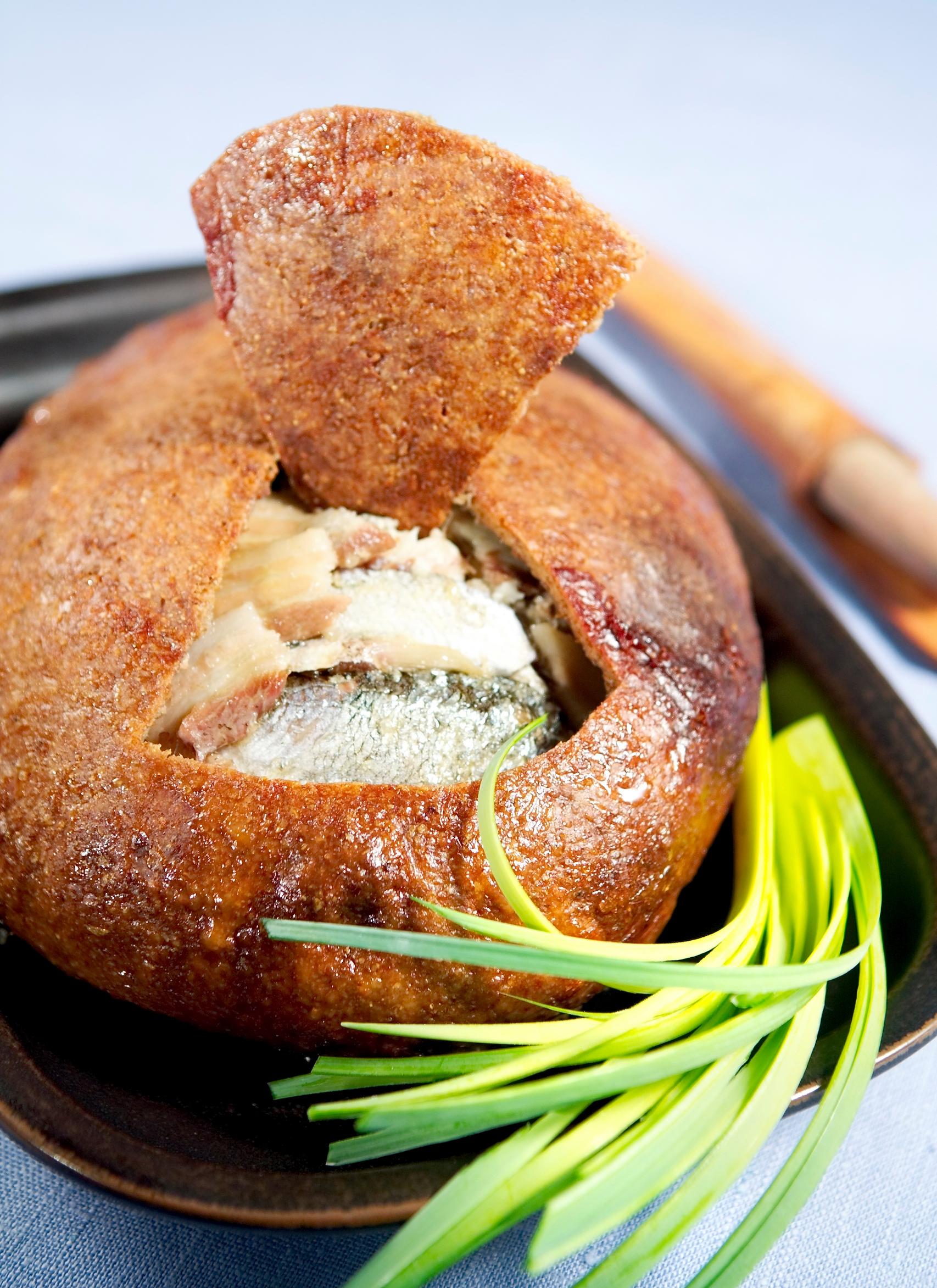 Muikkukukko on perinteinen savolainen herkku, jossa ruiskuoren sisään leivotaan kalaa ja sianlihaa. Tällä reseptillä valmistat 10 hengen kalakukon.