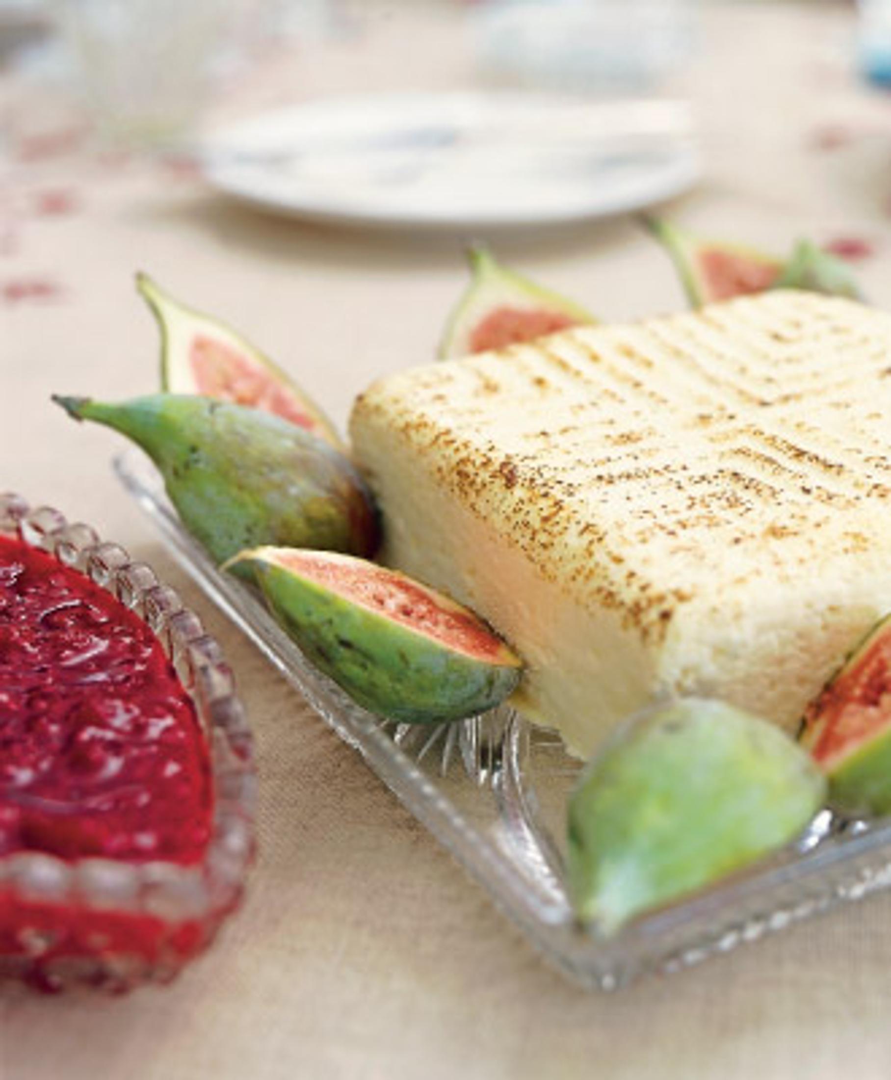 Koristele munajuustovati viikunoilla. Tarjoa munajuusto vadelmahillon kera.
