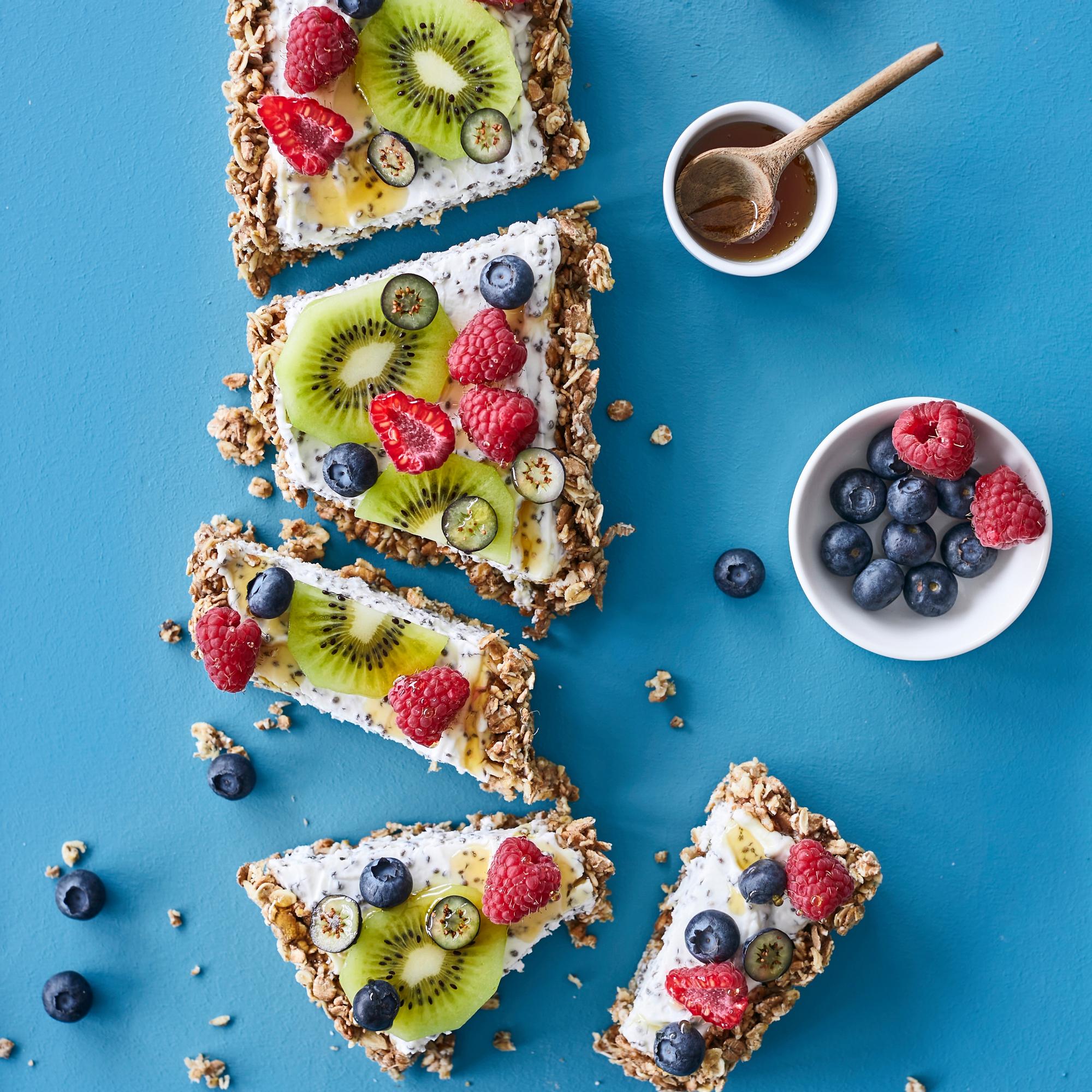 Myslipohjaisen piirakan täytteenä on chiansiemenillä hyydytettyä ja hunajalla maustettua rahkaa. Mysli-marjapiirakan kruunaavat tuoreet marjat ja hedelmät. Ps. Kun päivä alkaa näin makoisasti, mitä kaikkea muuta hyvää se tuokaan tullessaan?