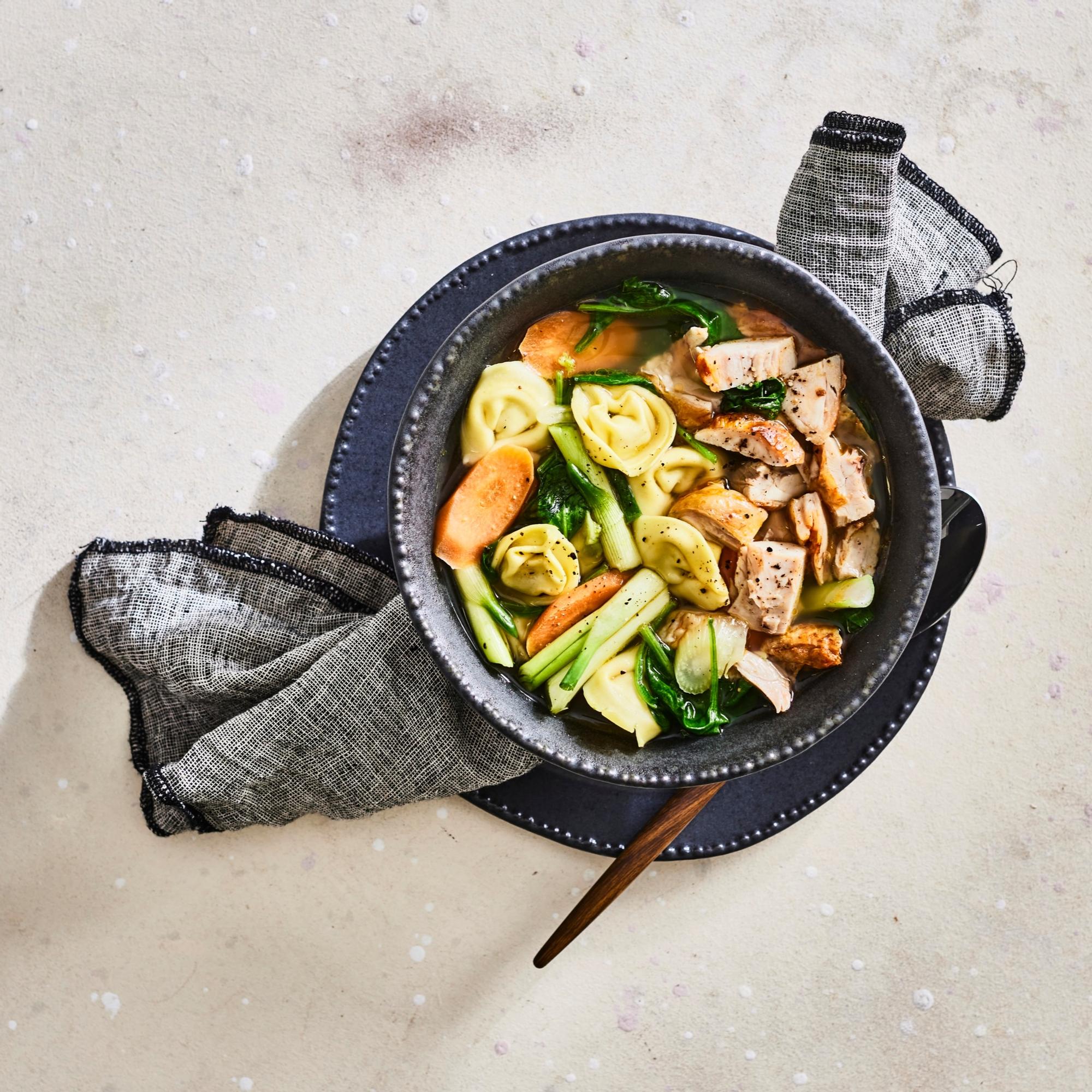 Pikatie soppalautaselle! Nopea kana-tortellinikeitto valmistuu grillibroilerista ja valmiista tortellineista