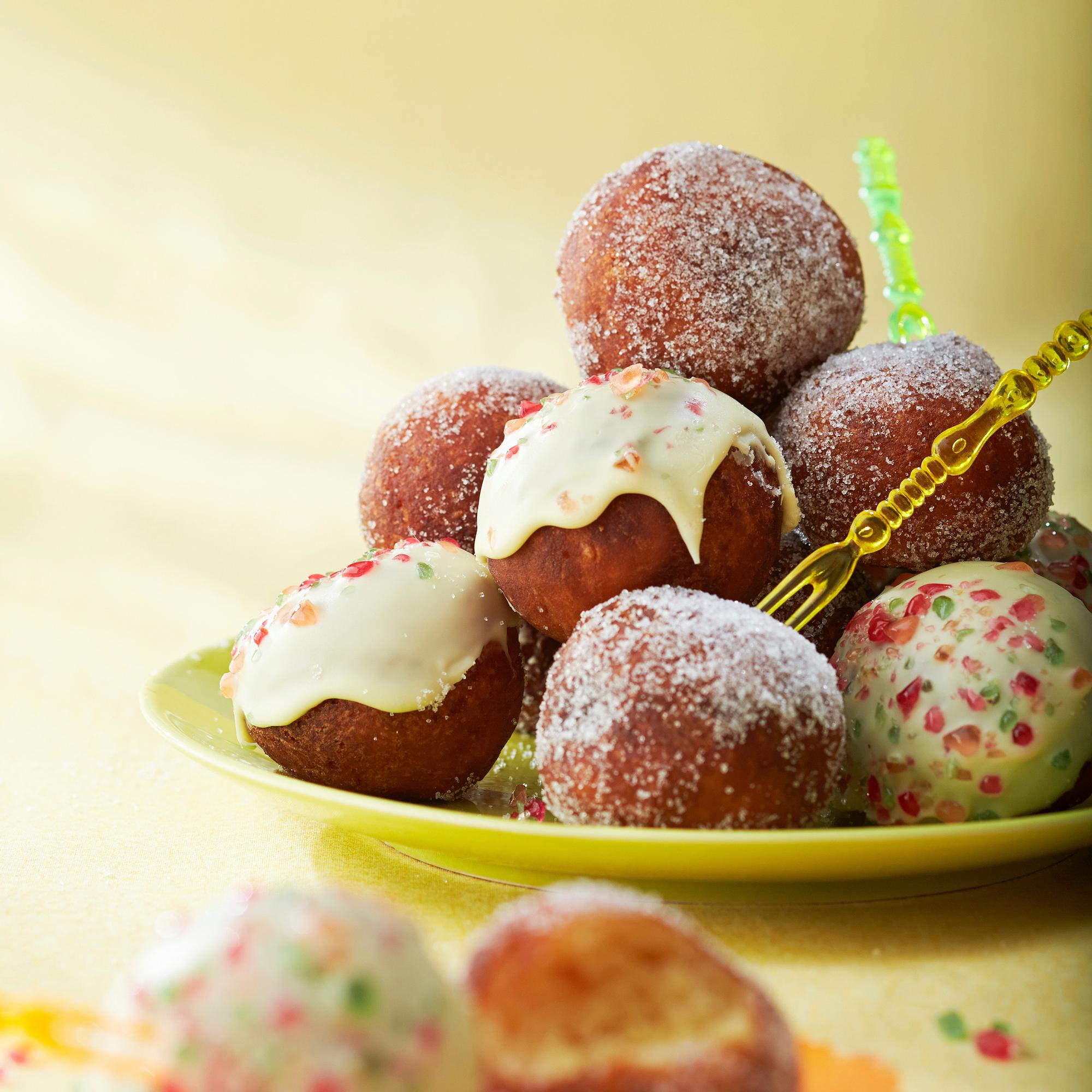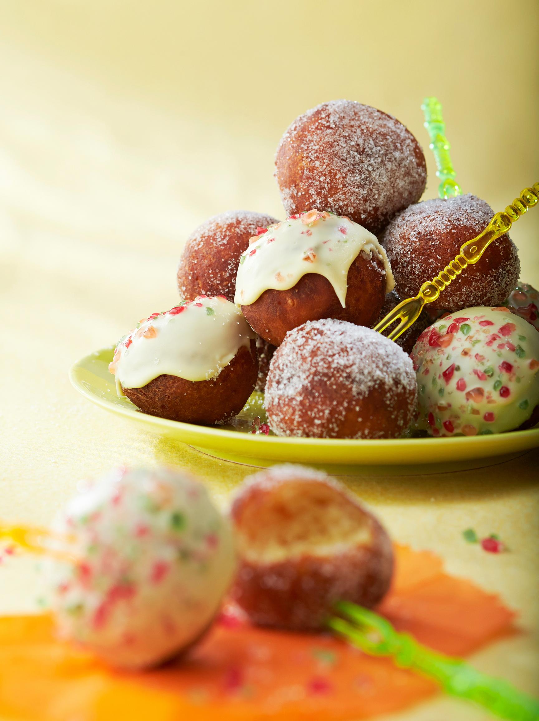 - Lämmitä öljy isossa padassa 170–180 asteiseksi. Laske reikäkauhalla varovasti 4–5 taikinapalloa paistumaan öljyyn. Paista ne kullanruskeiksi välillä käännellen, yhteensä noin 4 minuuttia.