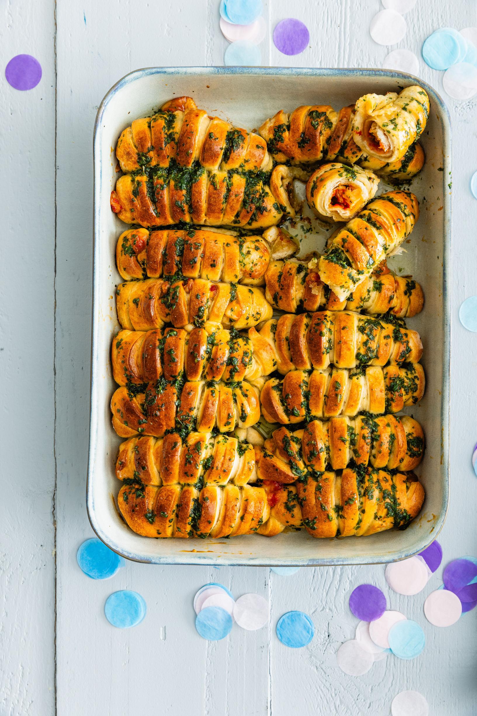 Kääri pizzataikinasta hauskat nyhtöpizzarullat. Tomaattikastike ja mozzarellajuusto ovat varmat hittitäytteet, mutta kokeile myös muita lasten (ja aikuisten) suosikkeja. Vain mielikuvitus on rajana!