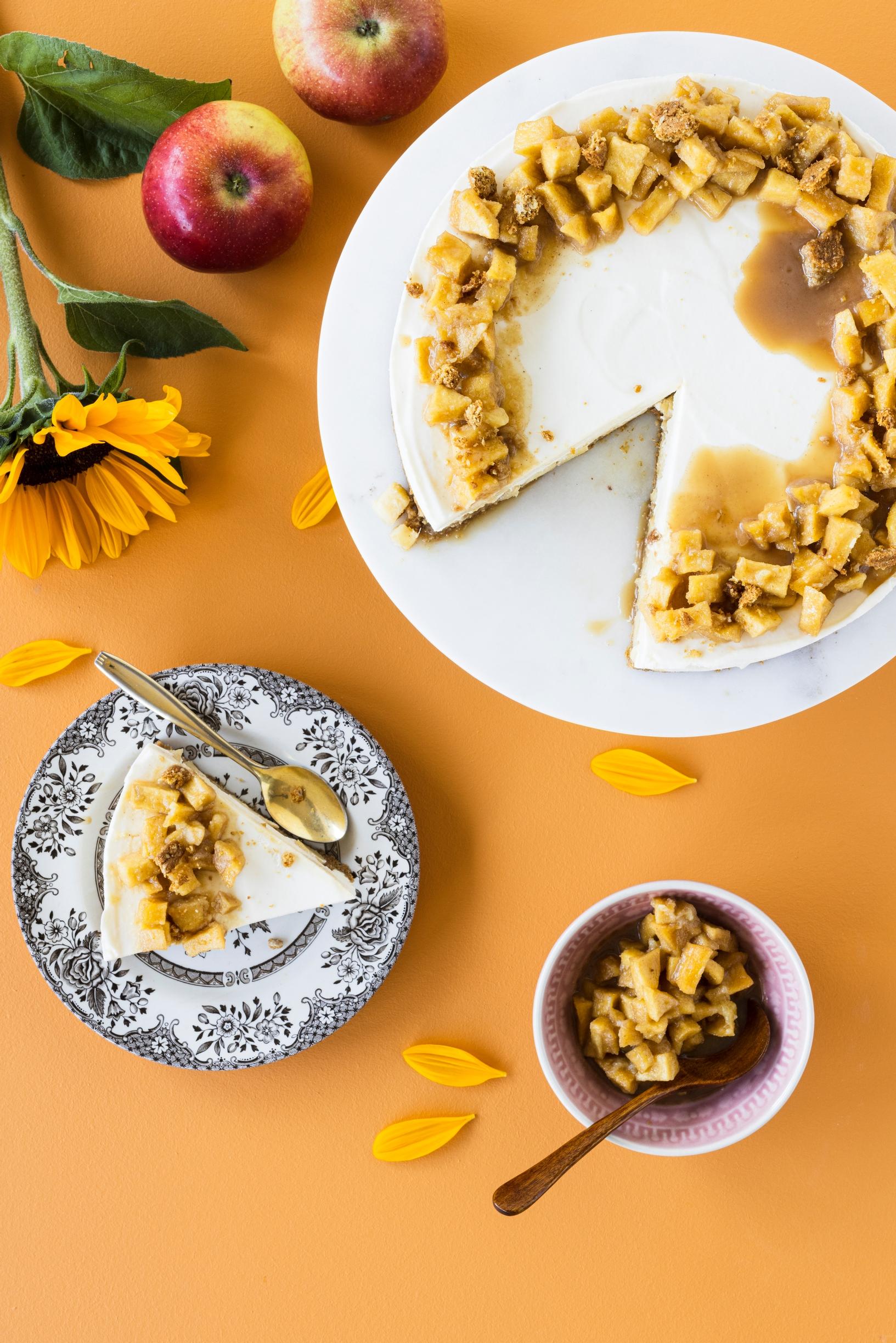 Omenajuustokakku yhdistää suloisesti karamellisoidut omenat, kanelin, vaniljan ja kauran – joko saa maistaa?