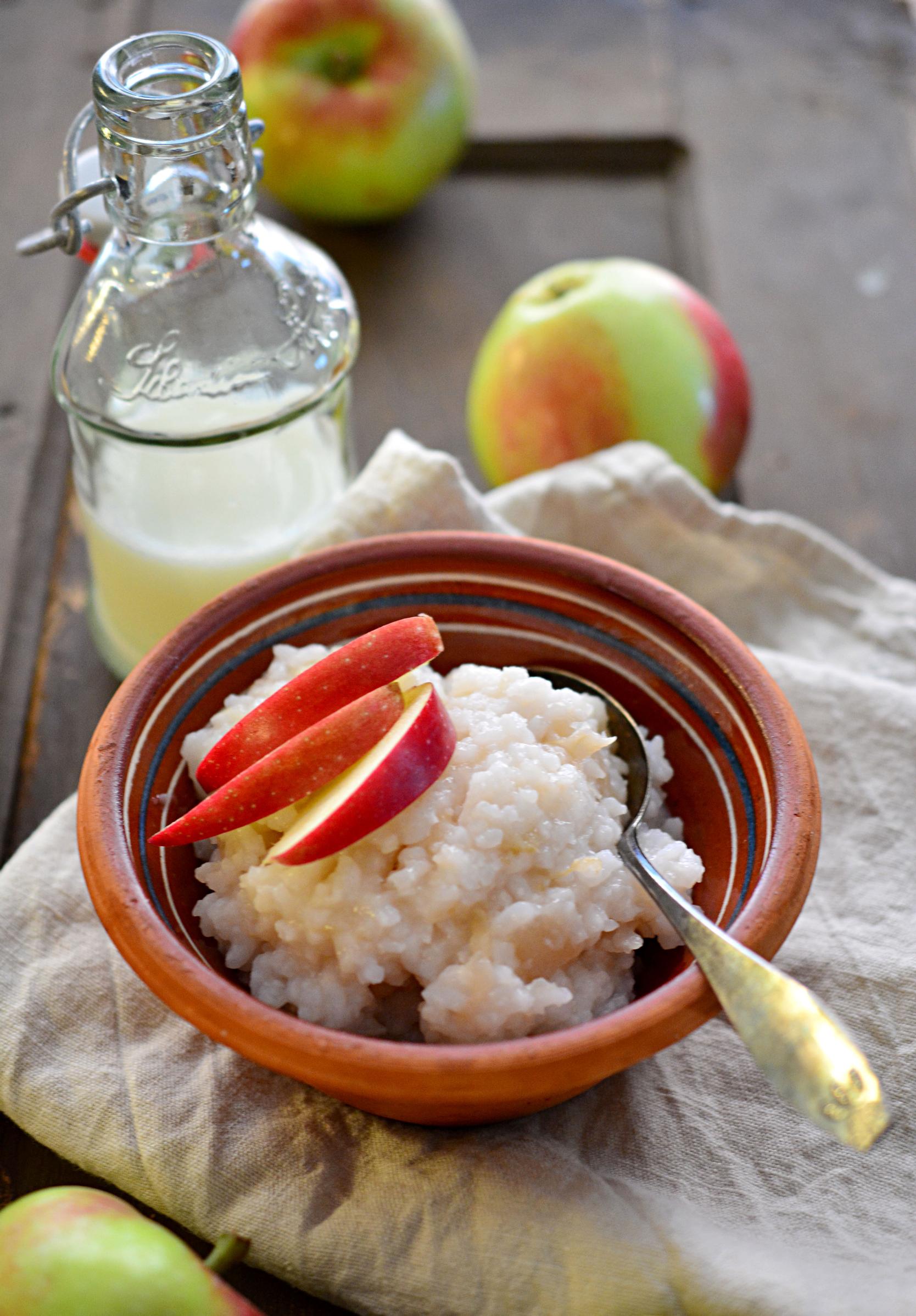 Herkullinen omenariisipuuro valmistuu kotimaisista omenoista.
