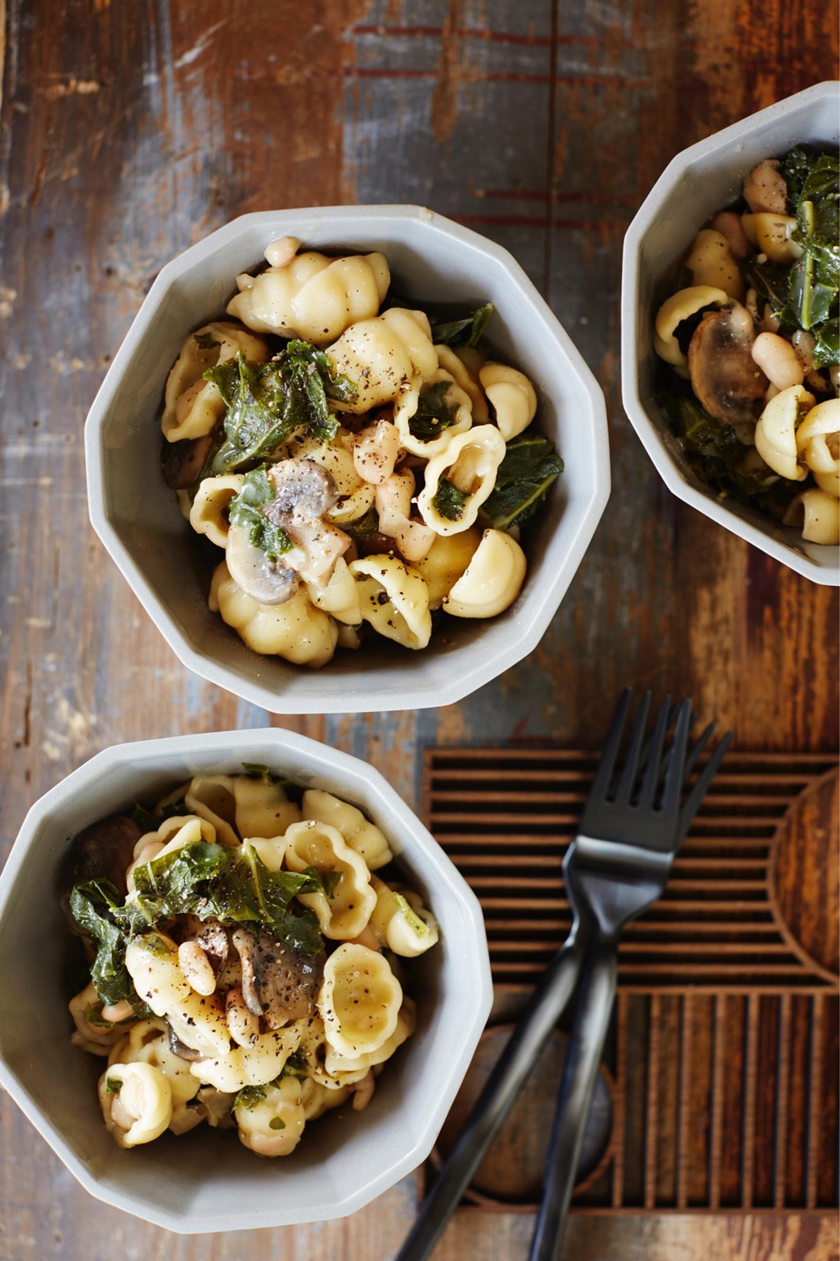 Yhden kattilan pasta on arjen pelastus, sillä siitä syntyy tosi vähän tiskiä. Testaa tätä lehtikaalilla, pavuilla ja herkkusienillä höystettyä one pot -pastaa jo tänään!
