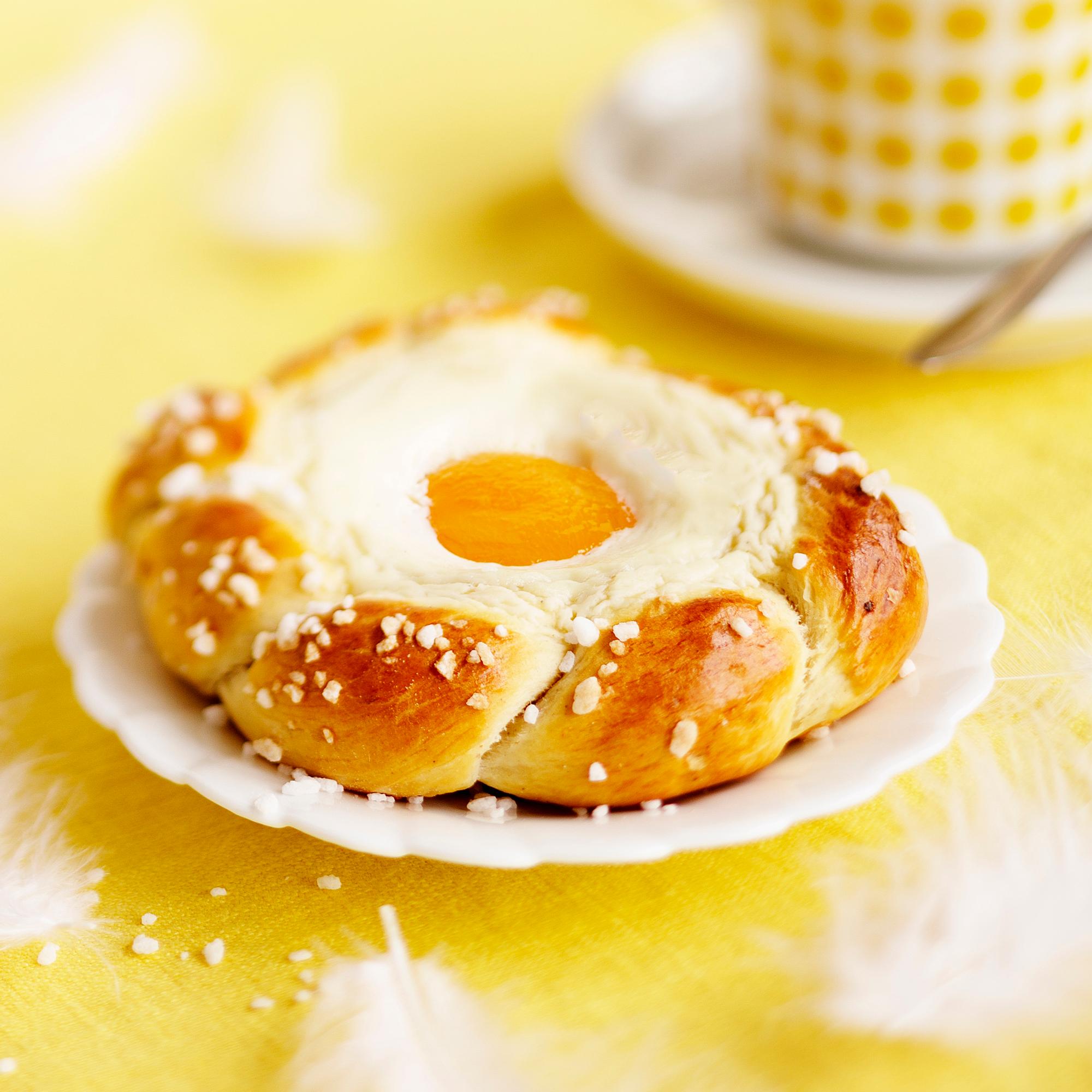 Itse leivottu rahkapulla kruunaa pääsiäisaterian. Letitetty taikina antaa pääsiäispullalle kauniin reunan. Sitruunainen rahkatäyte varmistaa ihanan maun, ja aprikoosi kauniin ulkonäön.
