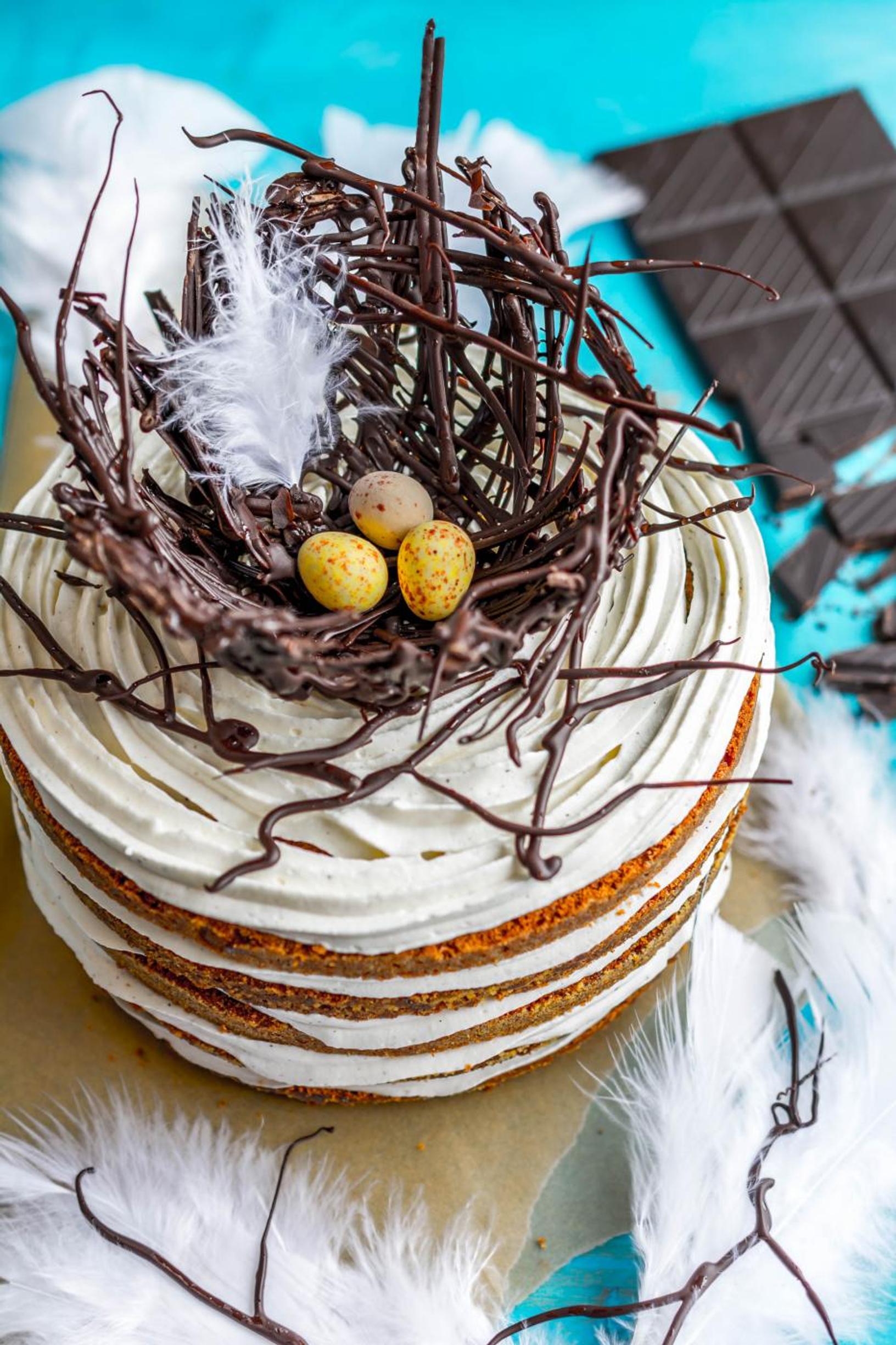 Pääsiäisen rahkakakku – suklainen linnunpesäkoriste takaa, että tämä kakku huomataan!