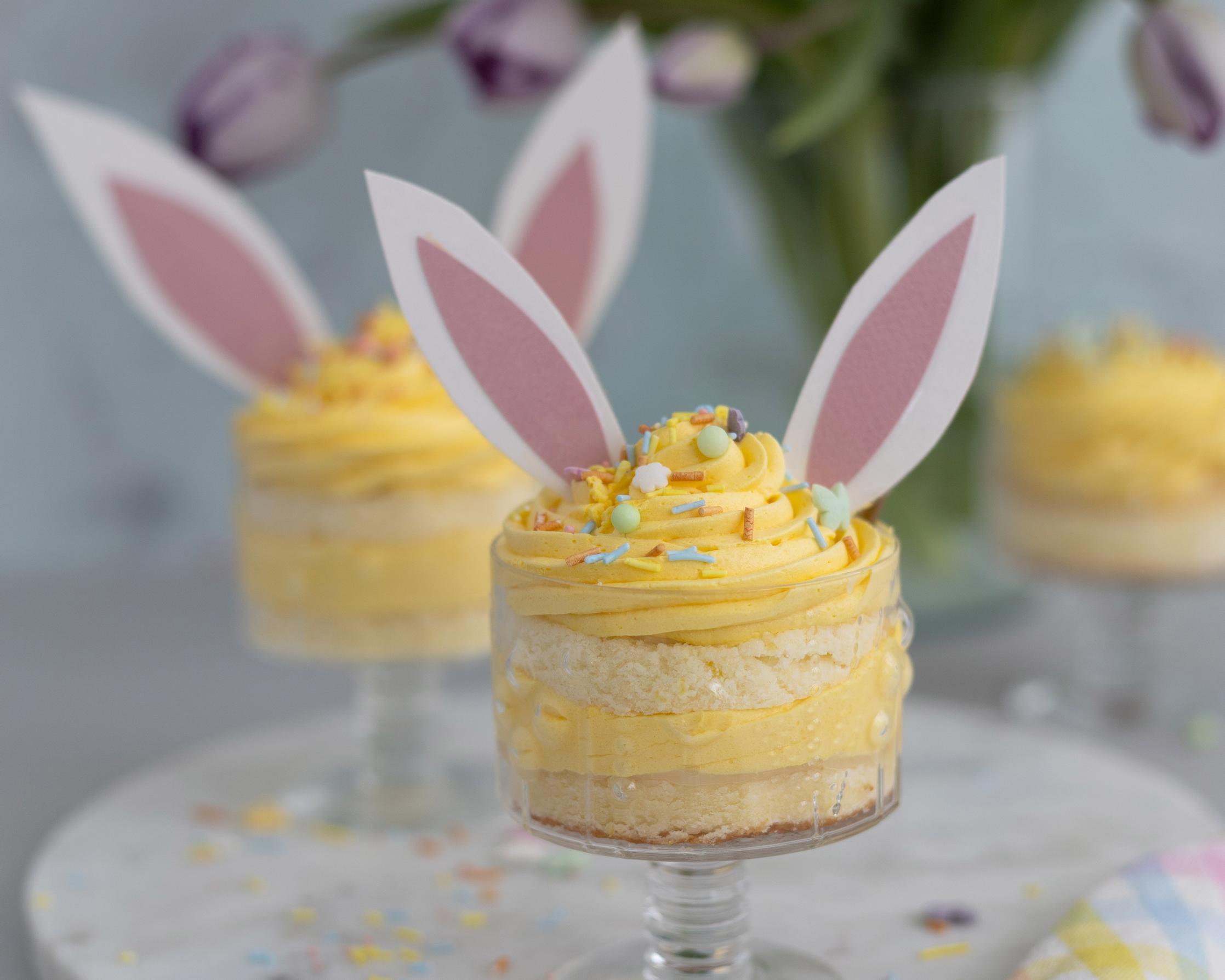 Juhlista pääsiäistä näillä hurmaavilla kakuilla. Pehmeä kakkupohja, täyteläinen vaniljamousse ja raikas sitruunatahna muodostavat vastustamattoman makuelämyksen, joka ihastuttaa niin perheen pienempiä kuin suurempiakin herkkusuita. Valmistuksen helppous tekee niistä täydellisen lisän pääsiäisbrunssille tai jälkiruokapöytään.