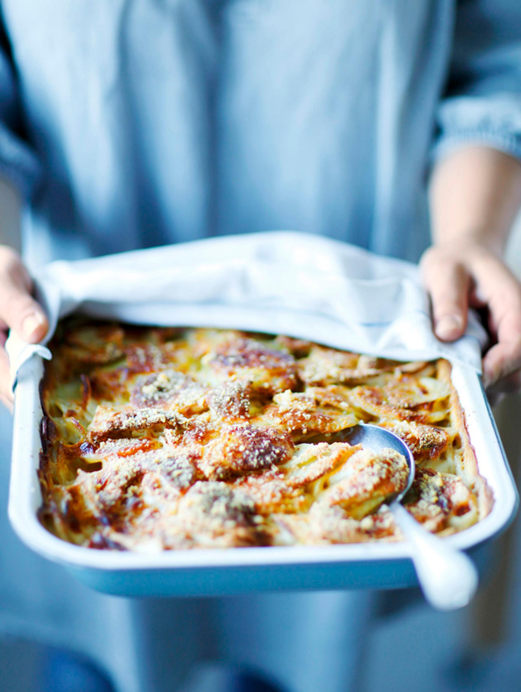 Palsternakka-perunavuoka on herkullinen vaihtoehto kermaperunoille. Perunat ja palsternakat sujahtavat viipaleiksi monitoimikoneella alle minuutissa. Käsin viipaloimiseen kannattaa varata vähintään 15 minuuttia.