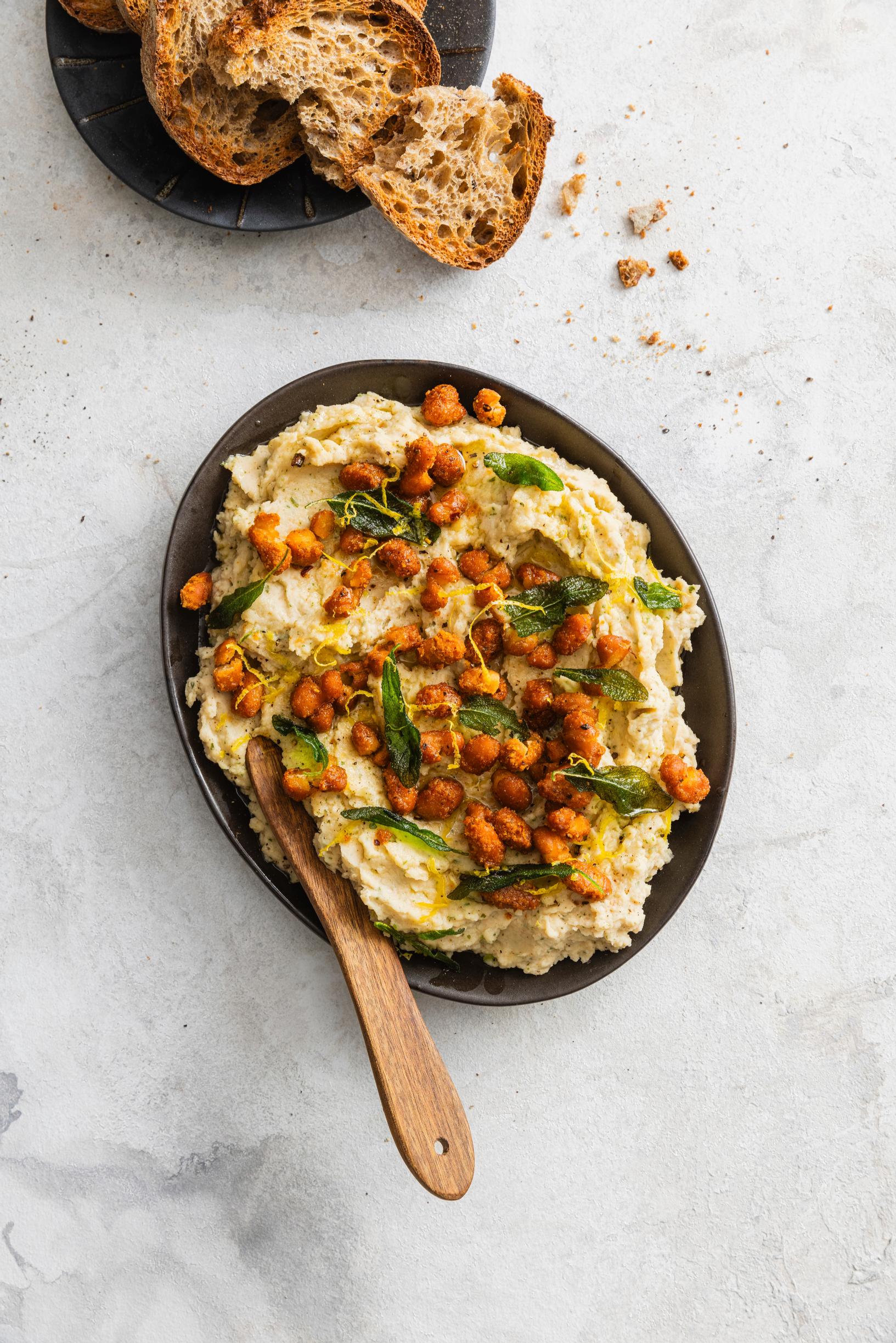 Täydellinen paputahna – voipavuista ja salviaöljystä syntyy ihana levite, joka höystetään paahdetuilla valkopavuilla