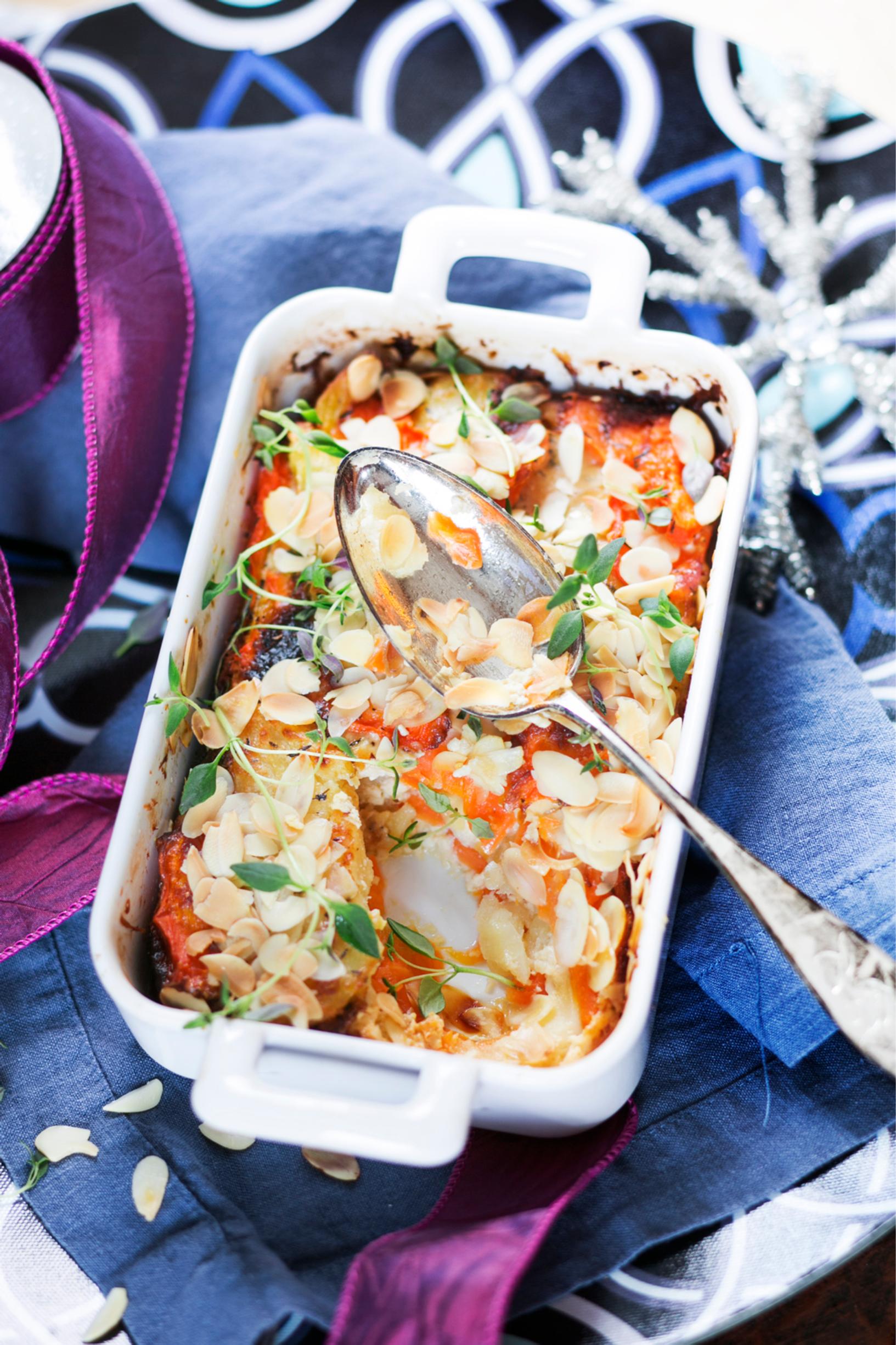 - Paista 200-asteisen uunin keskitasolla 40–45 minuuttia tai kunnes kasvikset ovat kypsiä ja laatikko on hyytynyt.