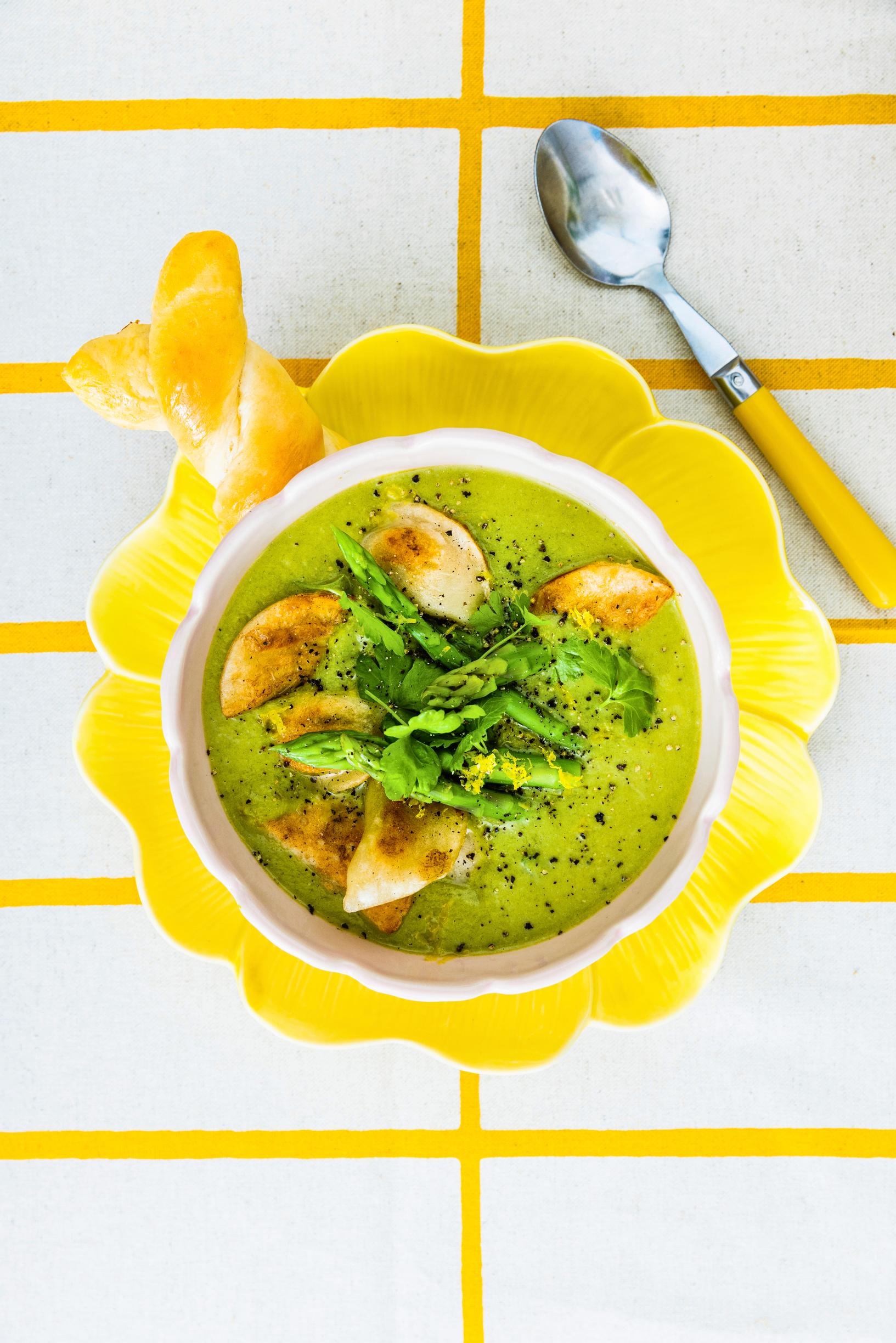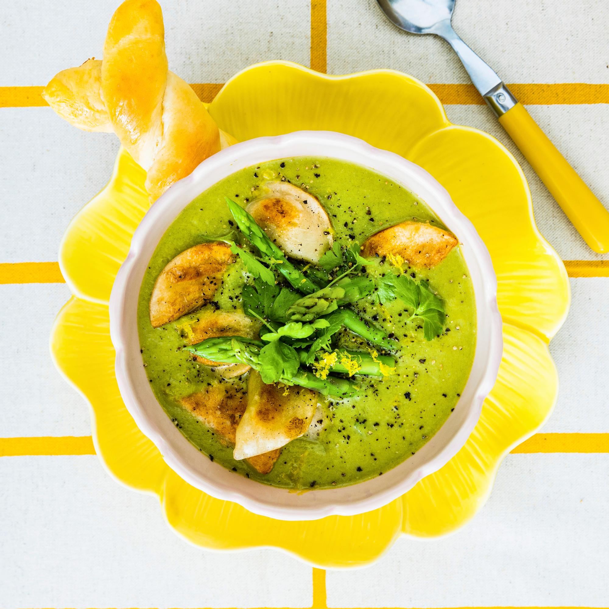 Paistetut pelmenit ja sitruunaiset parsannuput saavat soseutetun parsakeiton maistumaan entistä paremmalta.
