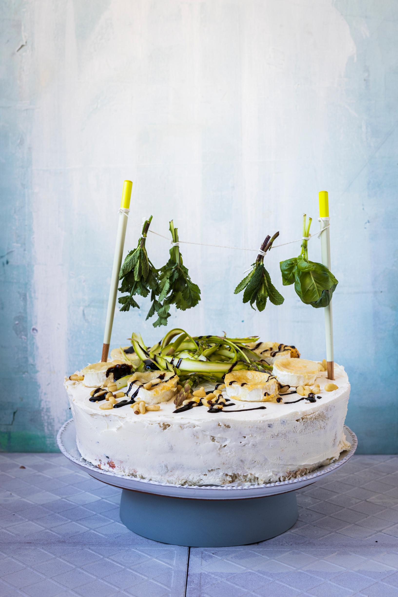 Vuohenjuustosalaatin maku yhdistettynä vihreään tuoreeseen parsaan tekee tästä voileipäkakusta keväisen juhlapöydän hitin. Nappaa resepti!
