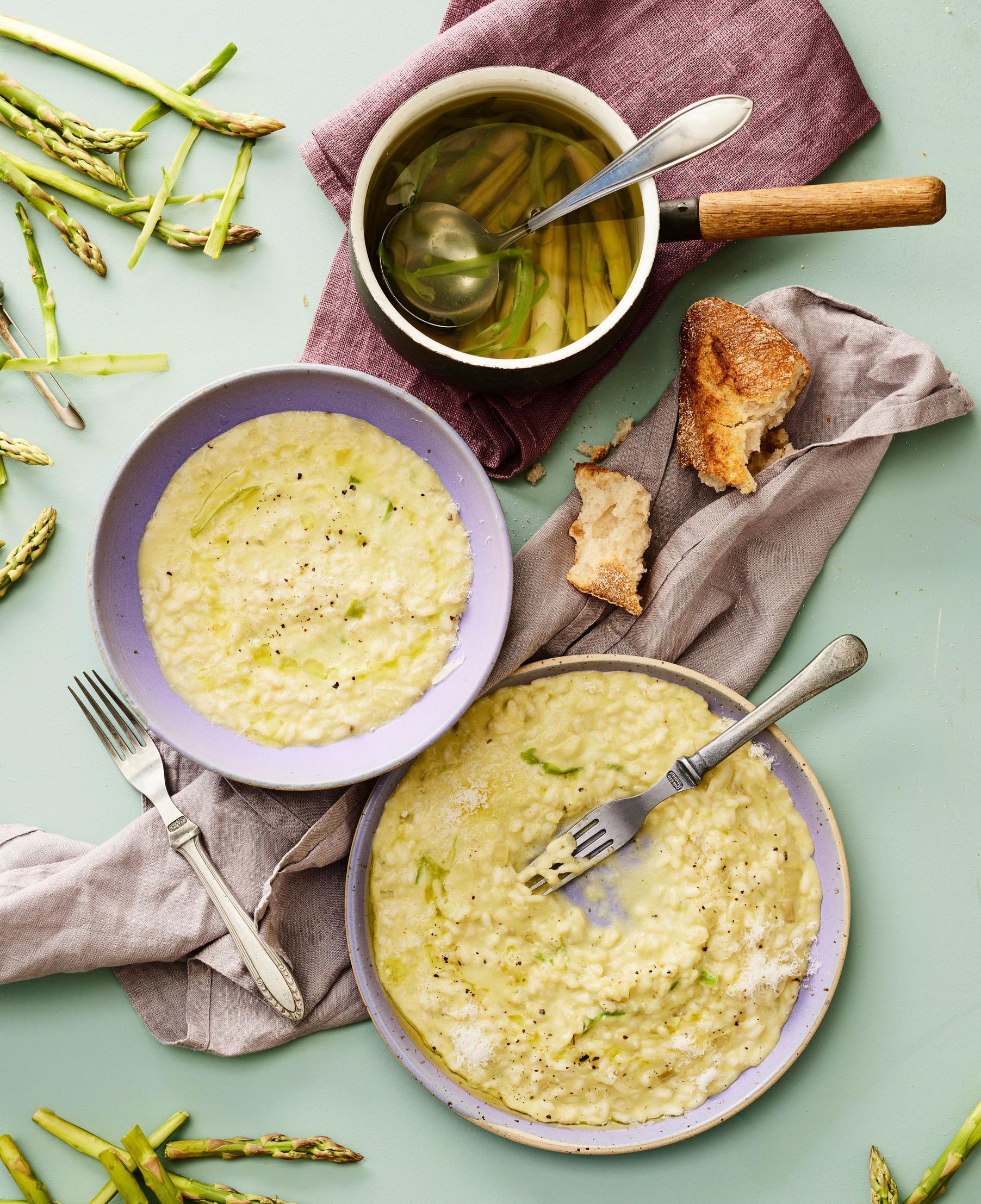 Heleänvihreä parsankuoririsotto on hävikkikokin keväinen lempiruoka – liemeen hyödynnetään parsanperkeet!