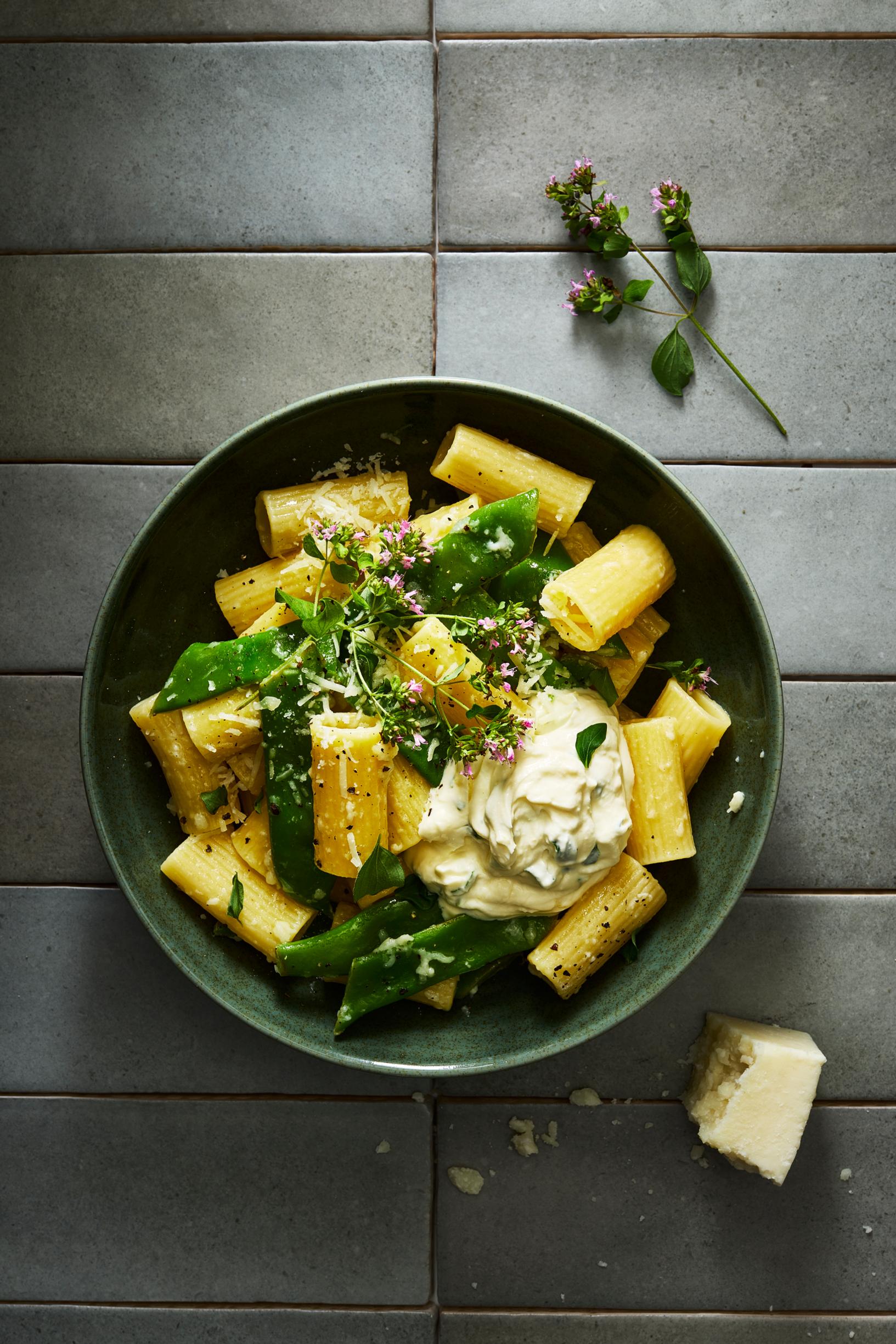 Pavut ihastuttavat pasta primaveran syysversiossa! Sitruunainen ja tuorejuustolla viimeistelty annos tekee onnesta soikeaksi