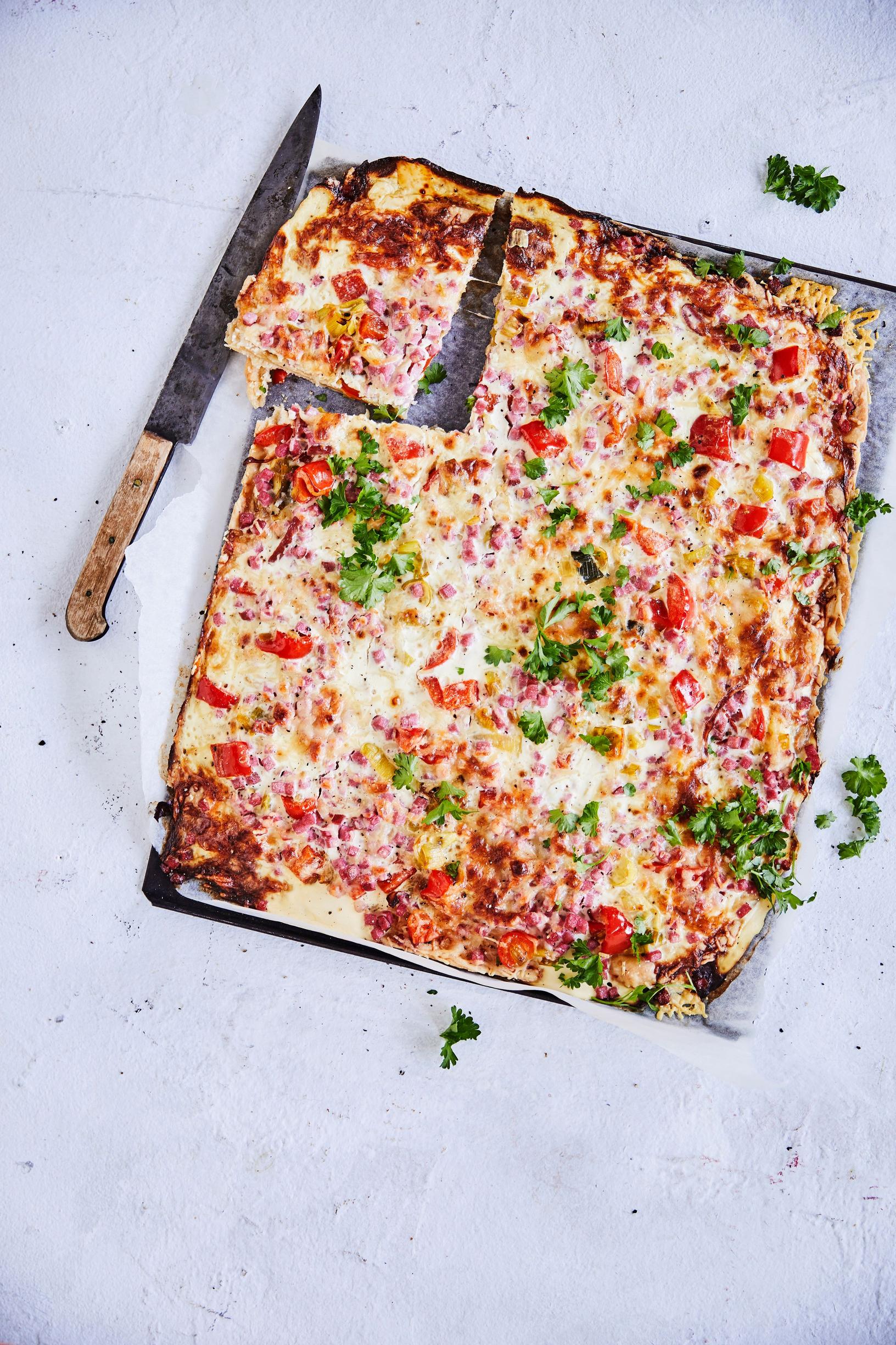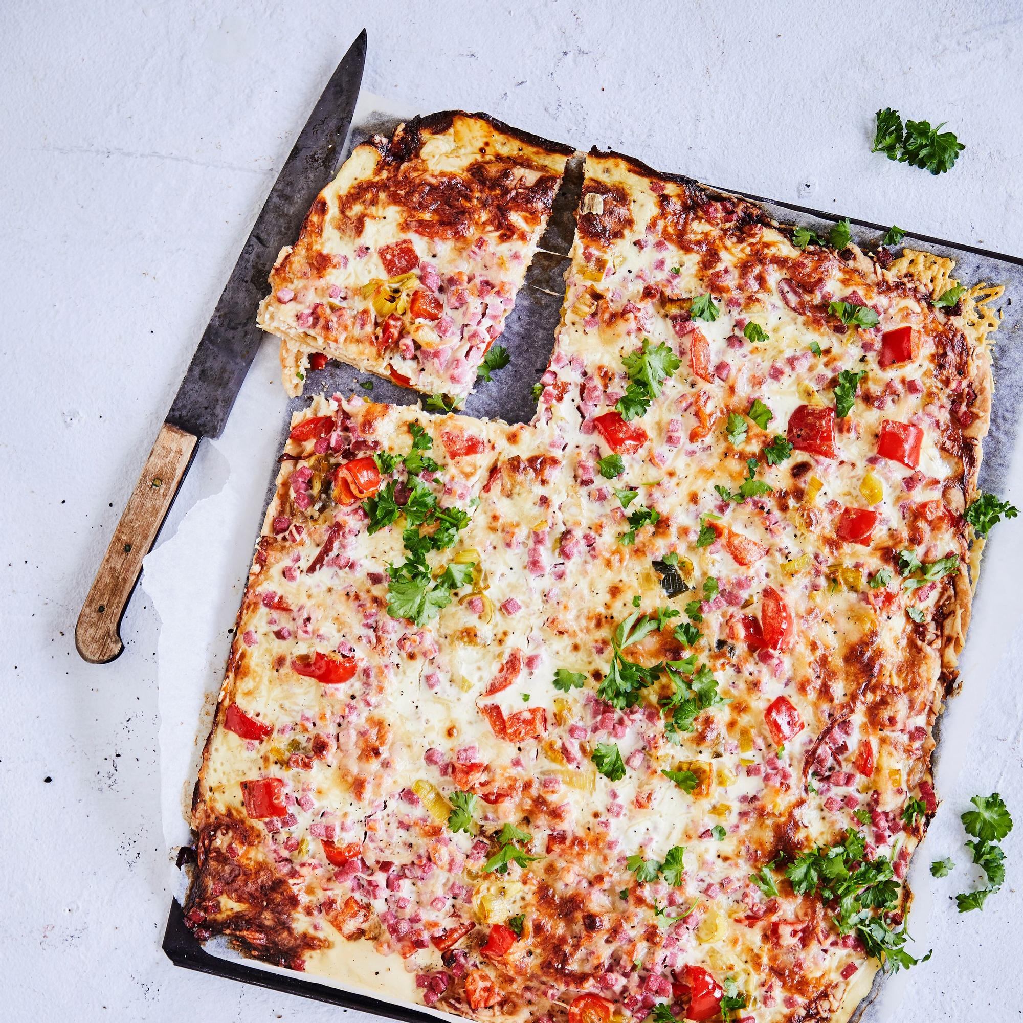 Enemmän on enemmän! Pellillinen kinkkupiirakkaa riittää taltuttamaan isommankin porukan suolaisennälän