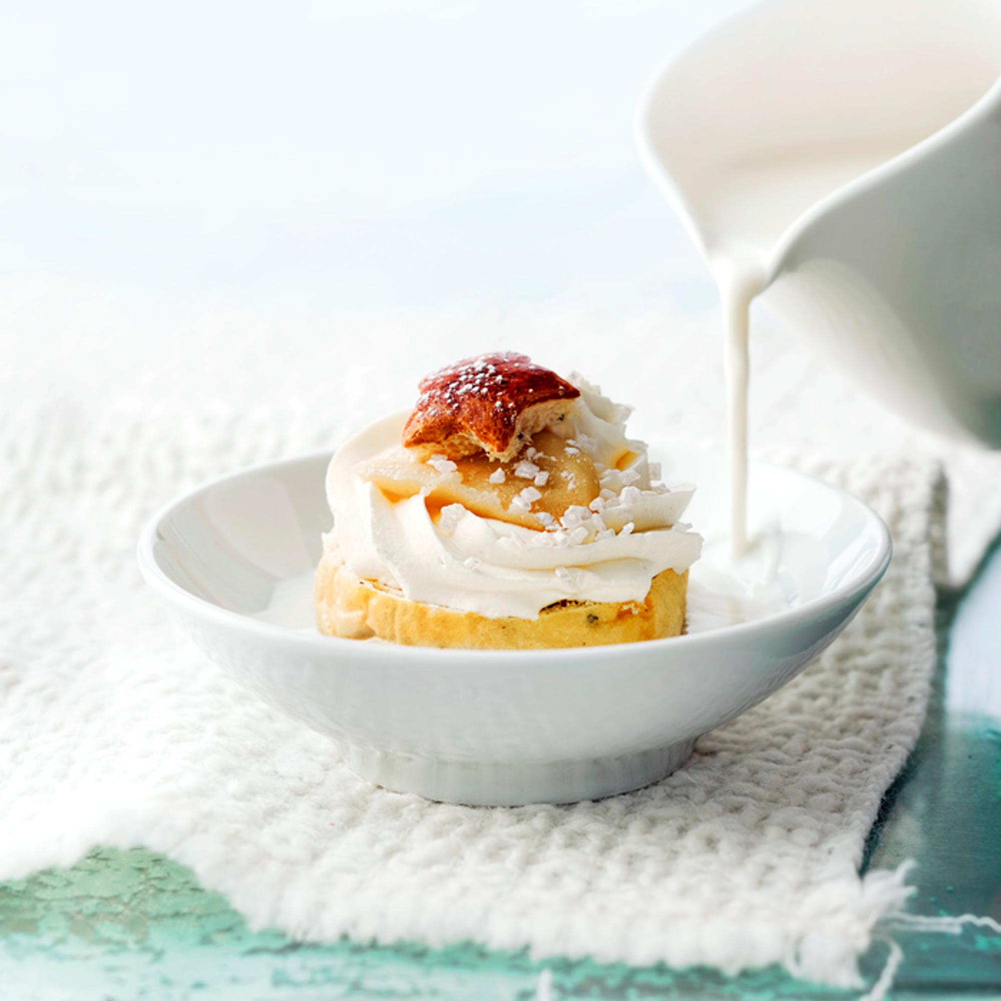 Perinteinen laskiaispulla täytetään mantelimassalla sekä kermavaahdolla ja tarjoillaan kuuman maidon kera. Kaupan versiot jäävät näille herkuille kakkoseksi – kokeile vaikka itse!