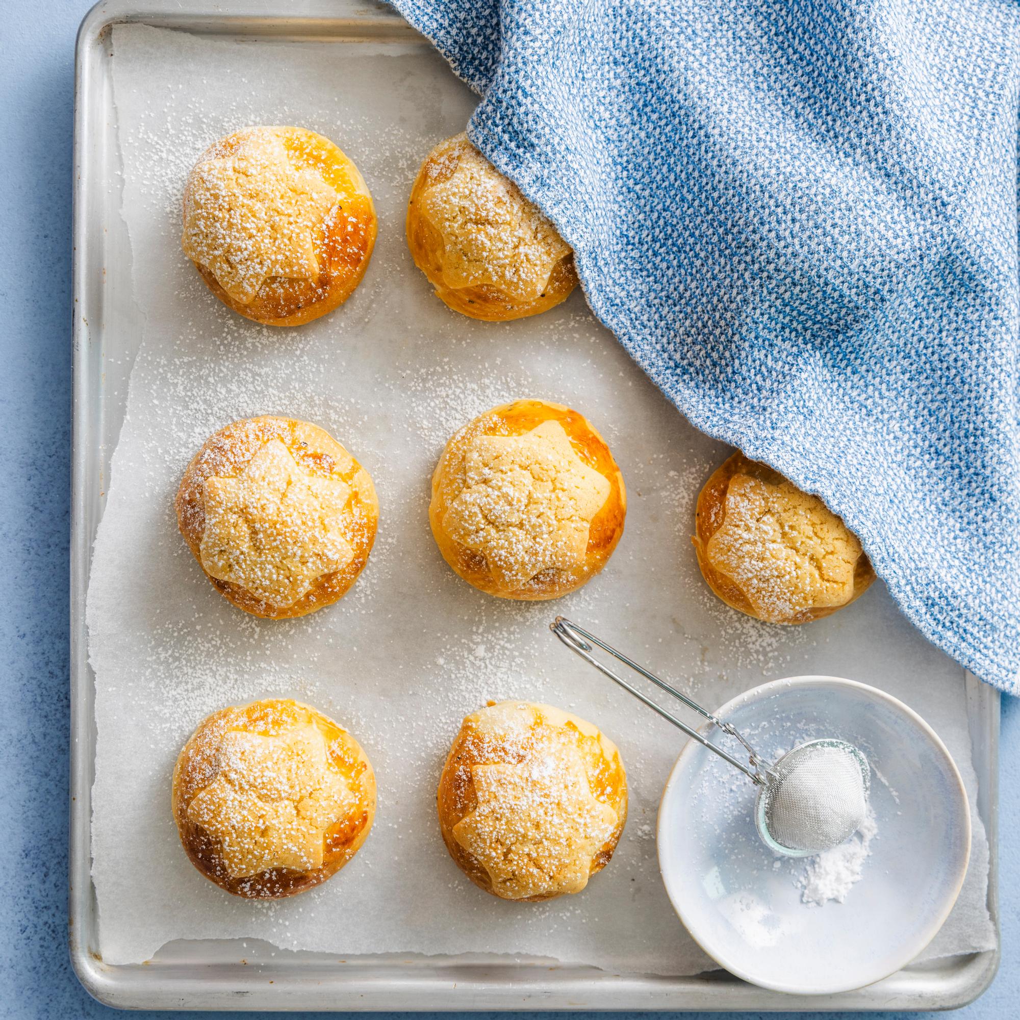 Perinteiset tähtipullat – pullien päällä tuikkivat appelsiinilla maustetut murotaikinatähdet